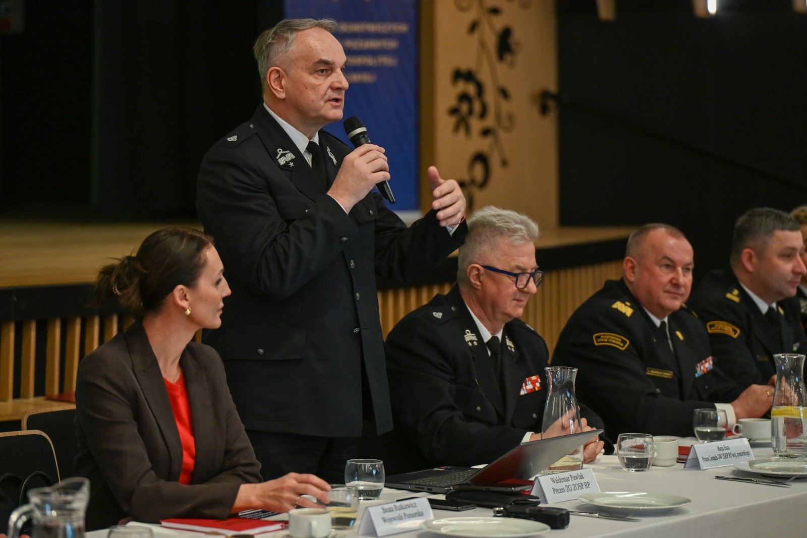 Spotkanie oficjalnie otworzył druh Marek Buza, prezes Zarządu Wojewódzkiego ZOSP RP woj. pomorskiego. Bezpośrednio po nim głos zabrał burmistrz Witold Ossowski, który w swoim wystąpieniu podkreślił kluczową rolę ochotniczych straży pożarnych w systemie bezpieczeństwa lokalnego. Zwrócił uwagę na konsekwentnie realizowaną w gminie politykę inwestycyjną — obejmującą zarówno budowę nowych remiz strażackich, jak i modernizację oraz rozbudowę istniejących strażnic. Jak zaznaczył, nowoczesna infrastruktura i odpowiednie zaplecze techniczne przekładają się bezpośrednio na sprawność działania jednostek oraz komfort służby druhen i druhów. Zapewnił również o dalszym wsparciu samorządu dla rozwoju OSP.