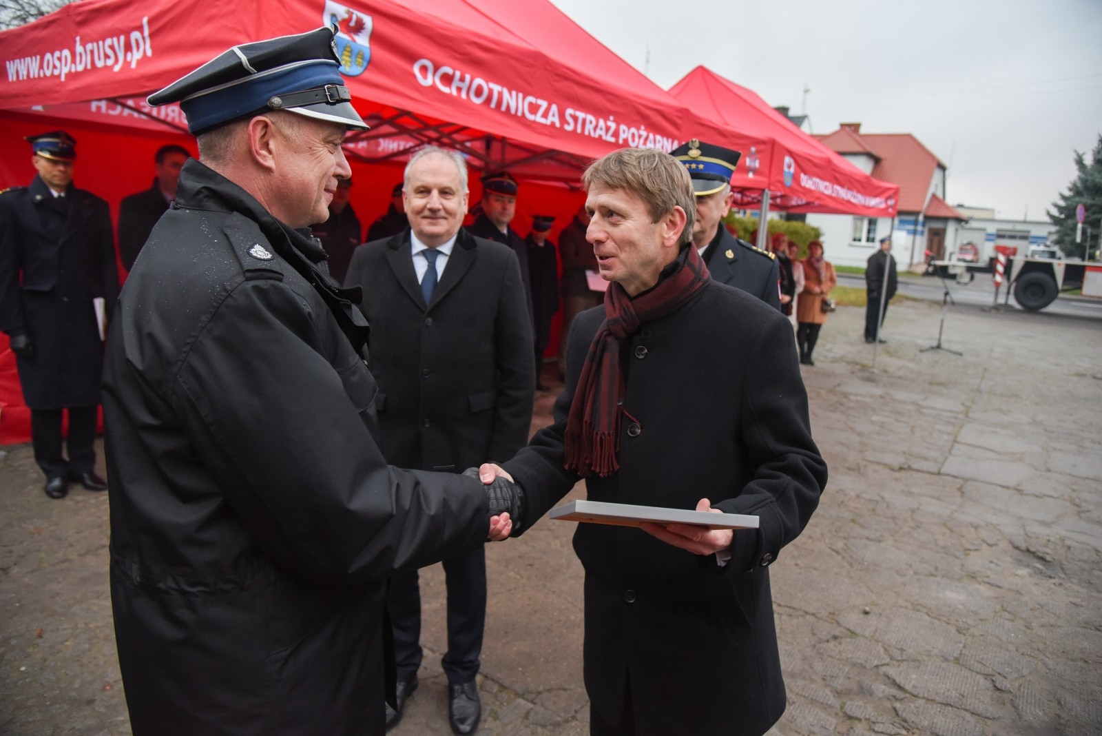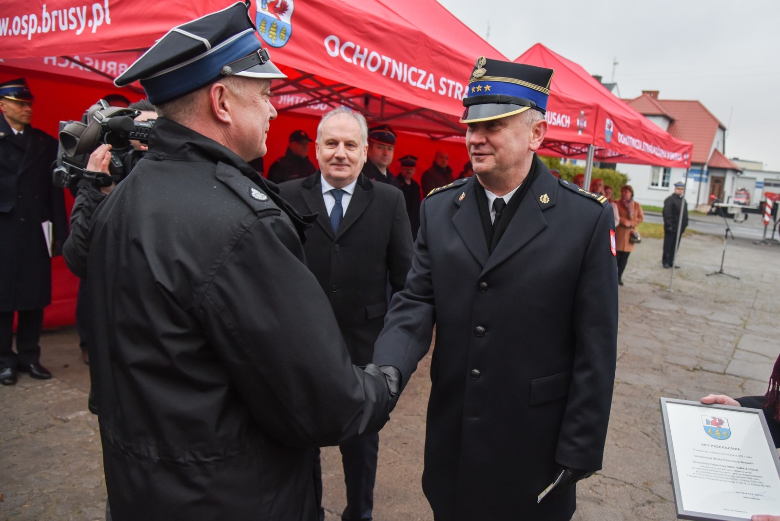 - Jesteśmy dumni z tego, że możemy przekazać do jednostki OSP w Brusach, właśnie ten wóz pożarniczy. Wóz, który wygrali nasi mieszkańcy. Mieszkańcy miasta i gminy Brusy, którzy brali udział w wyborach prezydenckich w drugiej turze – mówił podczas uroczystości Witold Ossowski, Burmistrz Brus.