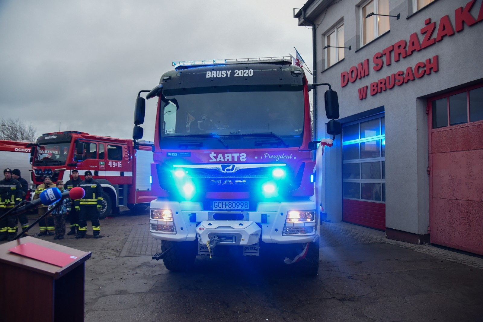 Choć wyjeżdżał do akcji już 43 razy i został dokładnie przetestowany przez miejscowych druhów, dopiero teraz stał się oficjalnie ich własnością. Mowa o nowym wozie bojowym, wygranym przez gminę Brusy w ramach plebiscytu „Bitwa o wozy”. Nowy pojazd ma też nowe imię – Prezydent.