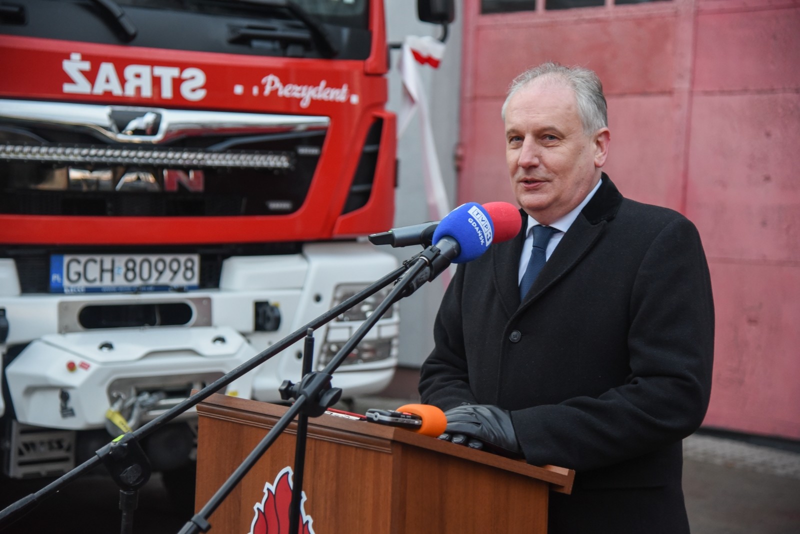 - Dołączam się do podziękowań wszystkim mieszkańcom miasta i gminy Brusy. Za to, że wywalczyli ten wóz, który po numerze rejestracyjnym patrząc 998 i po nazwie „Prezydent”, można powiedzieć, że będzie teraz jednostką flagową całej straży pożarnej, wszystkich druhów w mieście i gminie – dodał wojewoda.