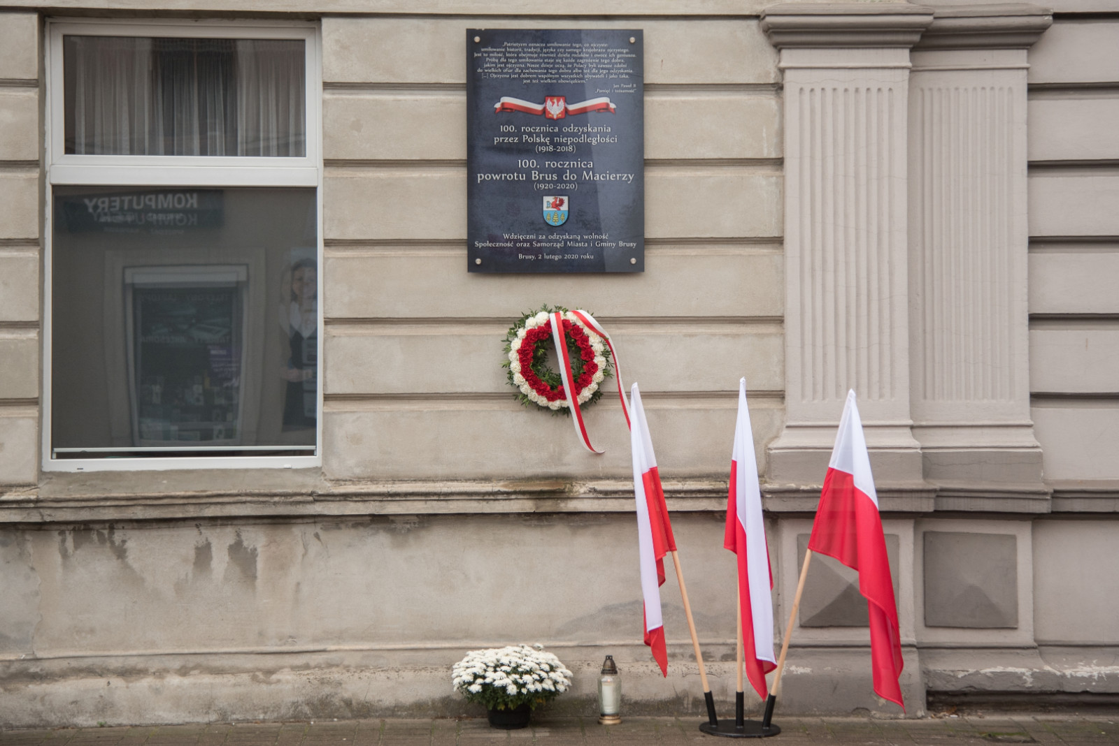 W szczególnym akcie pamięci złożono również kwiaty pod tablicą upamiętniającą 100. rocznicę powrotu Brus w granice Polski. Znicze zapłonęły także w innych miejscach pamięci na terenie gminy, w tym przy dębach pamięci przy ulicy Wojska Polskiego.