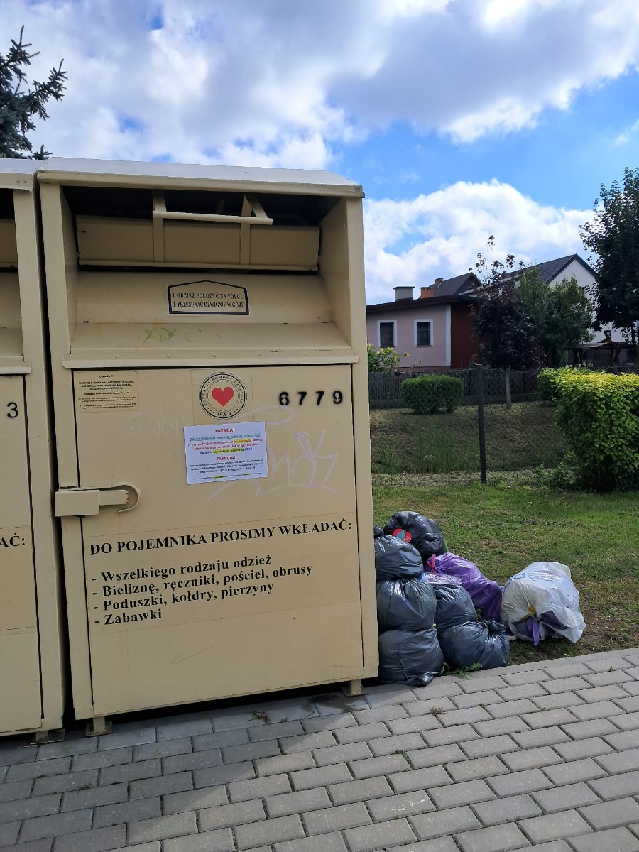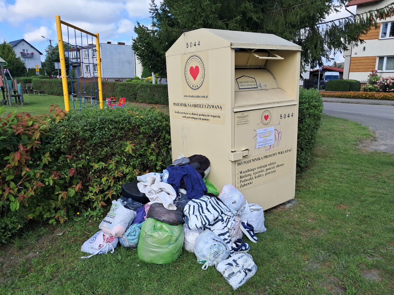 Szanowni Mieszkańcy, przypominamy, że zużytej odzieży i tekstyliów nie wolno wrzucać ani do własnych koszy na śmieci, ani do pojemników na odzież używaną firmy TESSO.