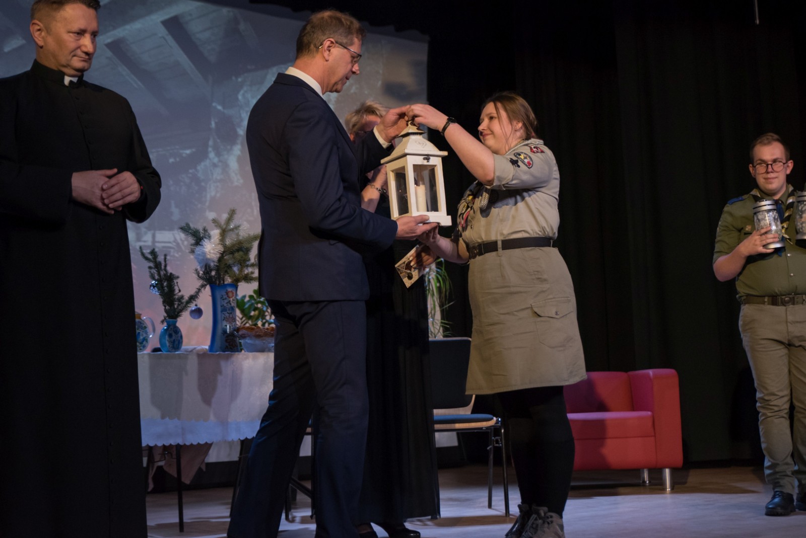 Betlejemskie Światło Pokoju dotarło do Brus! Jego uroczyste przekazanie odbyło się podczas wyjątkowego spektaklu bożonarodzeniowego "Opowieść świąteczna", którego twórcami byli artyści z Centrum Kultury i Biblioteki.