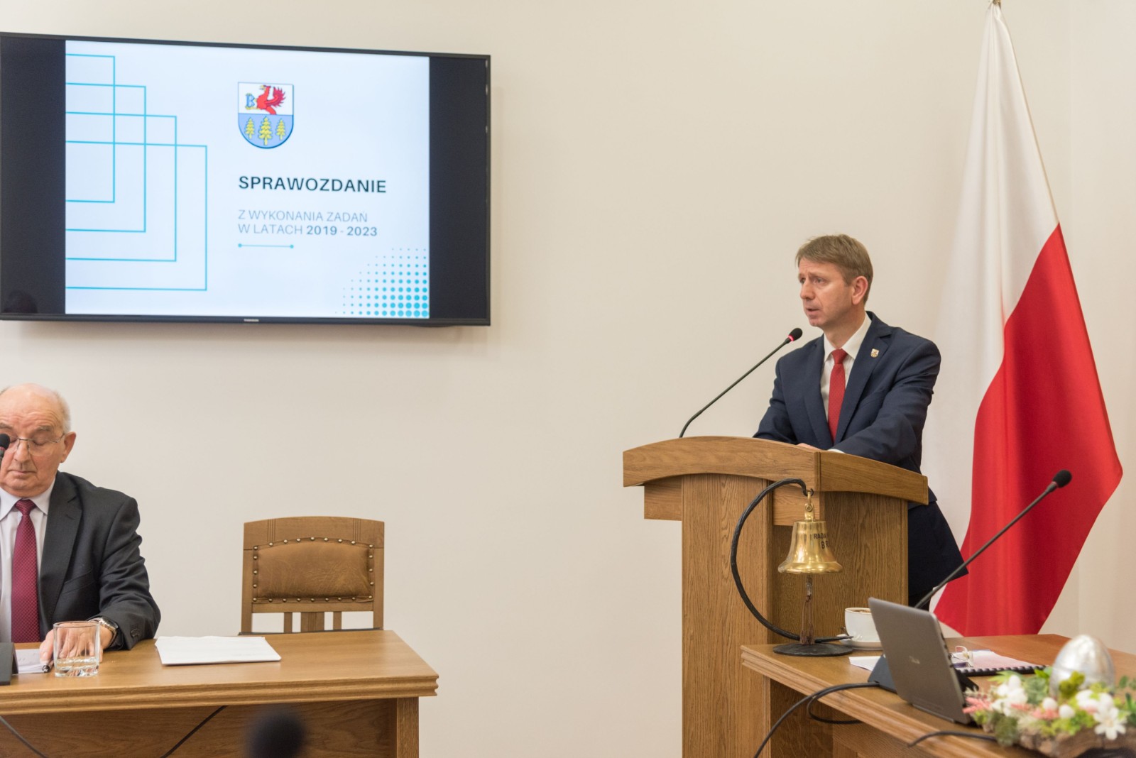 Sprawozdania z pracy Rady Miejskiej przedstawili przewodniczący Zbigniew Łącki i przewodniczący poszczególnych Komisji. Burmistrz Brus Witold Ossowski dokonał bilansu działań inwestycyjnych Samorządu w latach 2019-2023. Wybudowanych i zmodernizowanych zostało 69 km dróg za 41,6 mln zł. Na inwestycje w zakresie kultury, sportu i turystyki przeznaczono ponad 28 mln zł. Kolejne 25,6 mln stanowiły wydatki inwestycyjne związane z oświatą, ochroną środowiska, zdrowiem, bezpieczeństwem i usługami społecznymi. Gmina przeznaczyła na działania inwestycyjne łącznie 97 mln zł. Aż 100 mln środków unijnych i krajowych zasiliło budżet Gminy przeznaczony na inwestycje oraz tzw. projekty miękkie, czyli niematerialne z zakresu edukacji, polityki społecznej czy kultury.