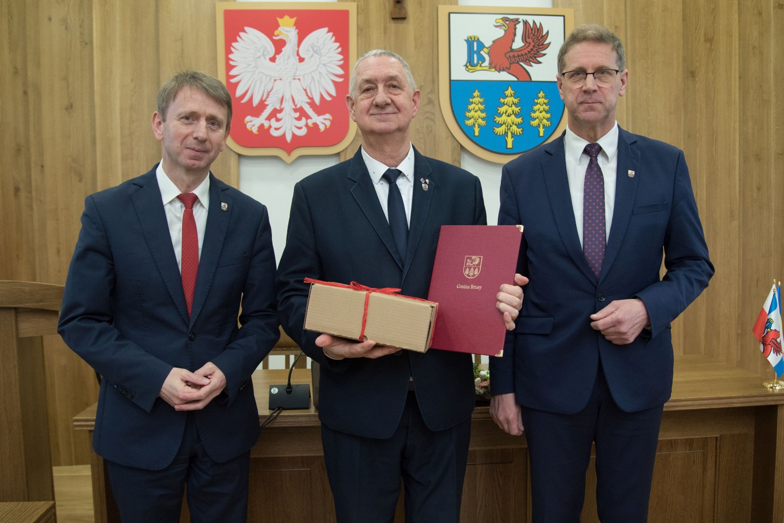 Burmistrz podziękował za współpracę wszystkim osobom zaangażowanym w rozwój miasta i gminy Brusy. Wyrazy wdzięczności skierował m.in. do członków Rady Miejskiej, szczególnie trójki radnych, która kończy wieloletnią pracę w Radzie Miejskiej i nie ubiega się o mandat w najbliższych wyborach. Mowa o Bernadecie Niebrzydowskiej, Andrzeju Wieckim i Zbigniewie Łąckim. Rada Miejska złożyła również podziękowanie na ręce burmistrza.