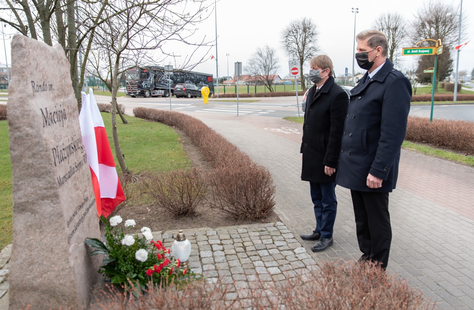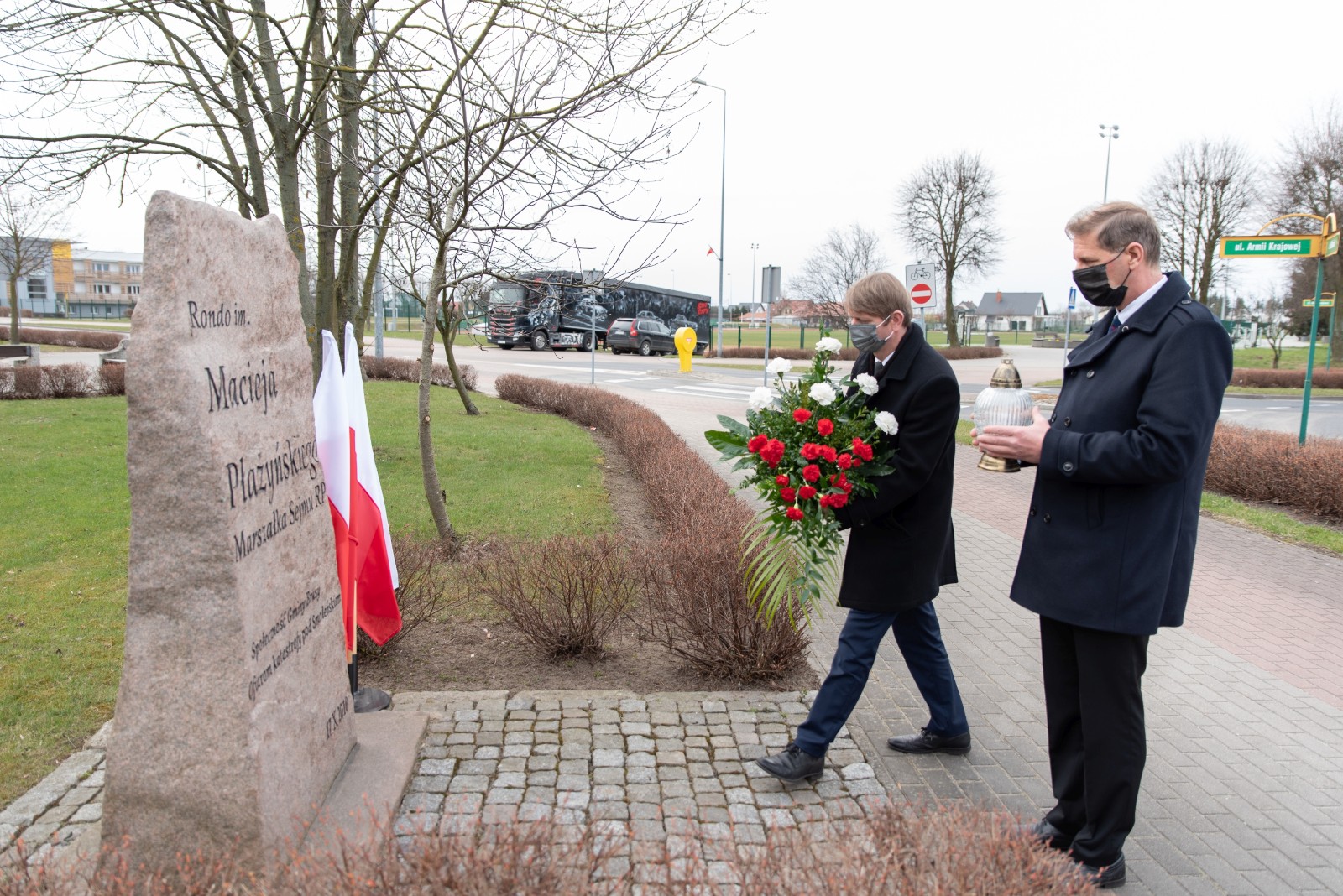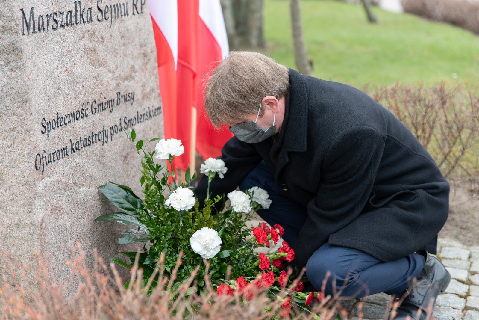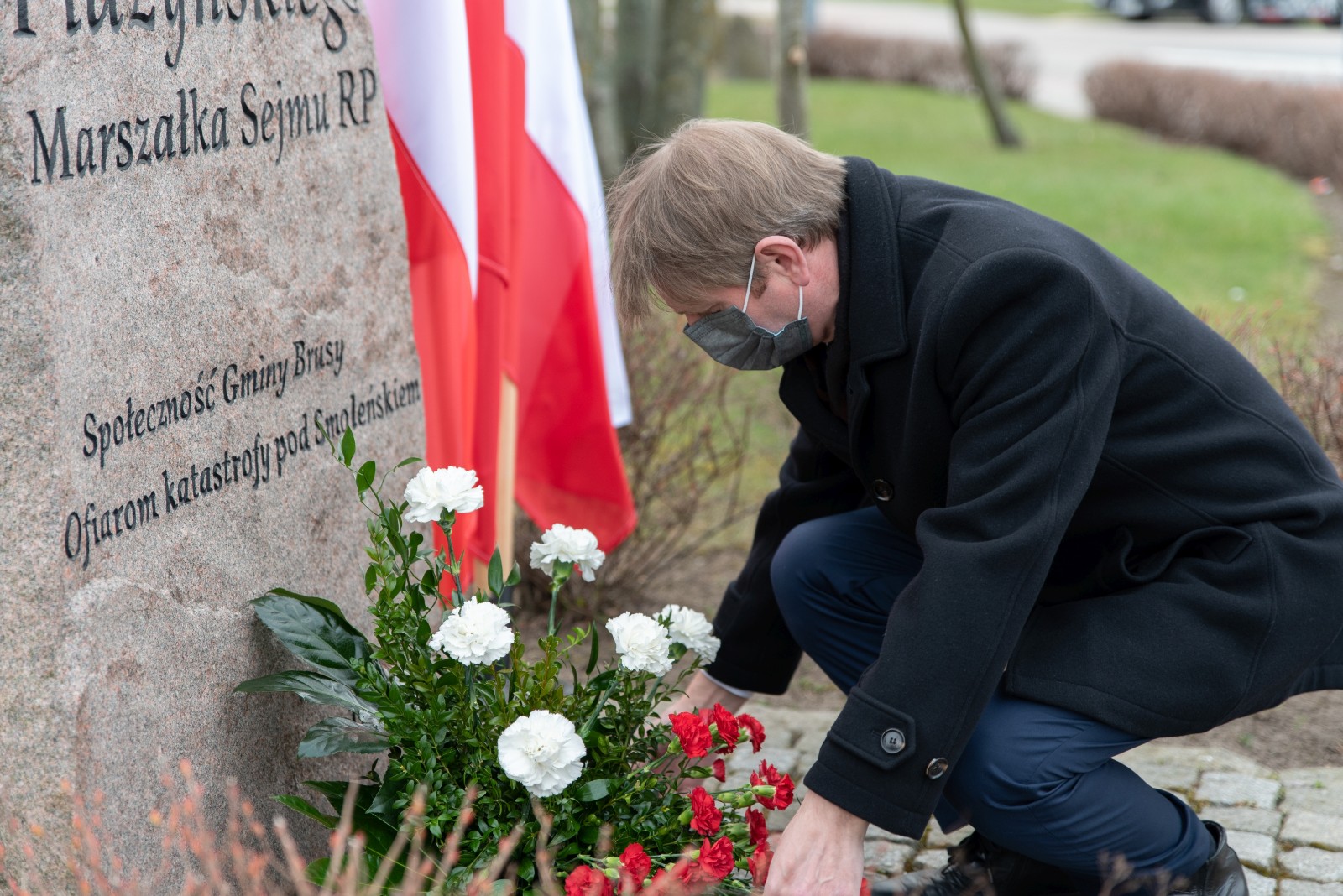 W hołdzie tragicznie zmarłym, Burmistrz Brus Witold Ossowski oraz Przewodniczący Rady Miejskiej w Brusach Zbigniew Łącki, złożyli wiązankę kwiatów oraz znicz przy pomniku ofiar katastrofy smoleńskiej, który mieści się w sąsiedztwie ronda im. Marszałka Sejmu RP Macieja Płażyńskiego w Brusach.