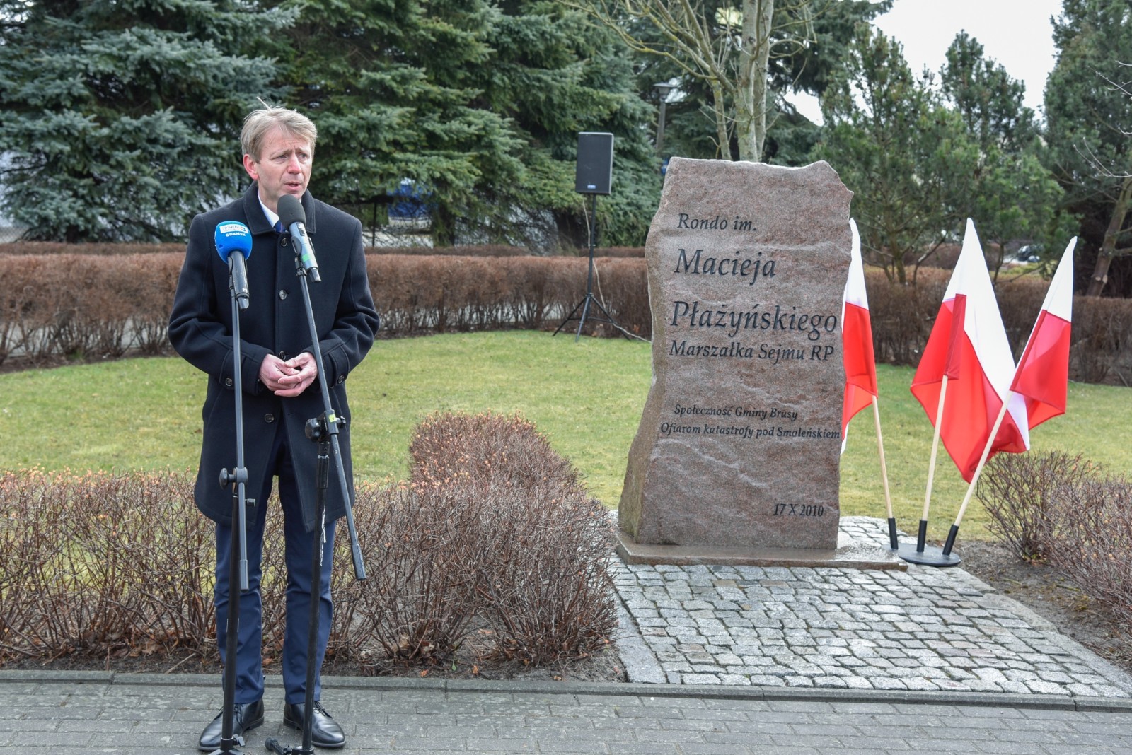 Ku czci Ofiar Katastrofy Smoleńskiej złożono kwiaty i zapalono znicze przy pomniku Ronda im. Macieja Płażyńskiego. Pomnik wzniesiono w 2010 roku na cześć Ofiar Katastrofy, wśród których był bliski Gminie Brusy Marszałek Płażyński. Dwanaście lat temu, pod Smoleńskiem, zginęło dziewięćdziesiąt sześć osób, również Prezydent Rzeczypospolitej Polskiej Lech Kaczyński i Małżonka Prezydenta Maria.
