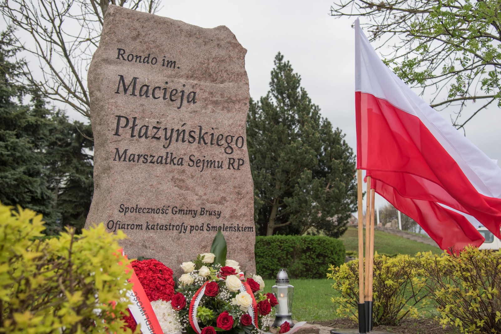 Ku czci Ofiar Katastrofy Smoleńskiej złożono kwiaty i zapalono znicze przy pomniku Ronda im. Macieja Płażyńskiego. Pomnik wzniesiono w 2010 roku na cześć Ofiar Katastrofy, wśród których był bliski Gminie Brusy Marszałek Płażyński. Czternaście lat temu, pod Smoleńskiem, zginęło dziewięćdziesiąt sześć osób, również Prezydent Rzeczypospolitej Polskiej Lech Kaczyński i Małżonka Prezydenta Maria.