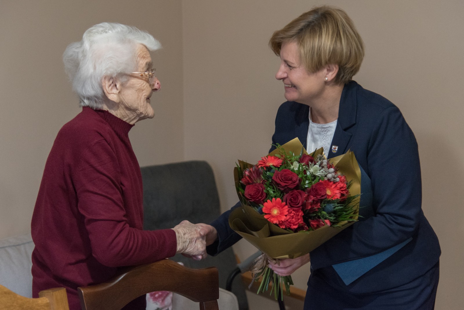 Pani Genowefa Bartkowska z Zalesia jest najstarszą mieszkanką gminy Brusy. 28 listopada świętowała 102. urodziny. Z serdecznymi życzeniami odwiedziły Panią Genowefę: w imieniu własnym i burmistrza Brus Witolda Ossowskiego, sekretarz Gminy Brusy Mariola Rodzeń, a także radna Rady Miejskiej Emilia Warnke i sołtys Zalesia Kamila Schwichtenberg. Nie zabrakło oczywiście najbliższej rodziny - dzieci i wnucząt.