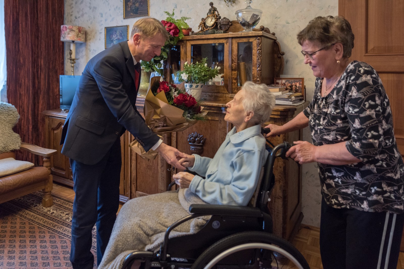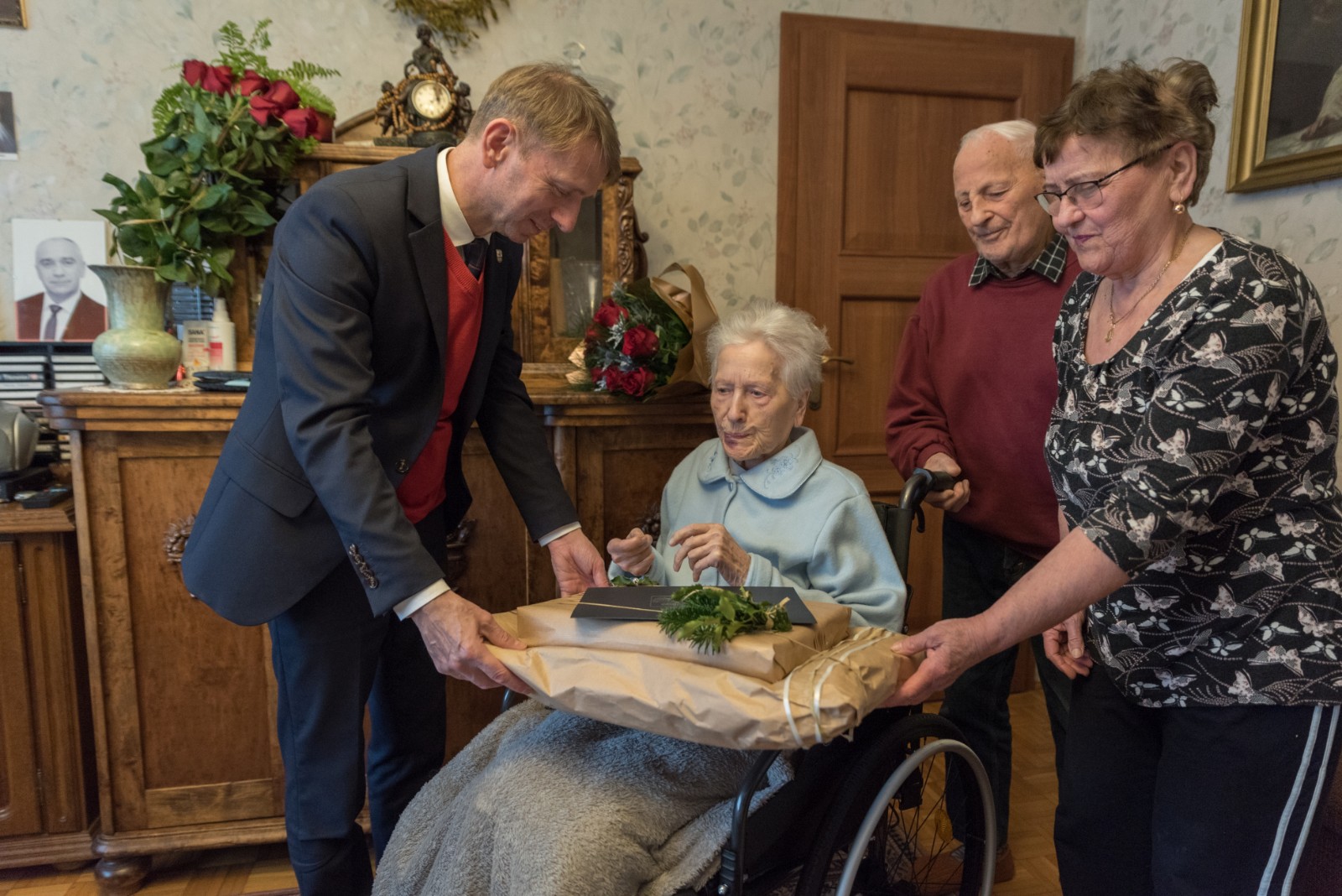 Pani Monika Kołodziej z Brus obchodziła wczoraj (19.12) 102. urodziny. Z tej okazji Solenizantkę odwiedził burmistrz Brus Witold Ossowski, który złożył Pani Monice serdeczne życzenia i wręczył okolicznościowy upominek. W spotkaniu uczestniczyli bliscy Pani Moniki.