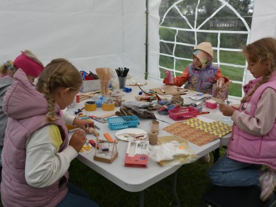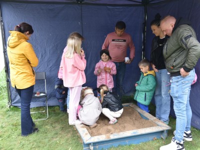 Dużą frajdę dzieciom sprawiło poszukiwanie skarbów wykrywaczem metali. Były także zabawy ruchowe z Animacje Rewelacje i pyszne przekąski przygotowane przez Panie z Koła Gospodyń z Leśna. Ponadto można było zwiedzić skansen i domostwo Artysty z przewodnikiem.