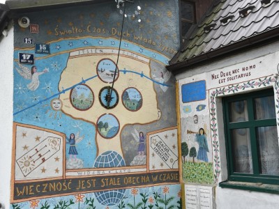 Ważną częścią pikniku była prezentacja odnowionej instalacji pn. „Zegar słoneczny”, której elementami są malowidło na ścianie domu artysty i rzeźby umieszczone na zadaszeniu wejścia do warsztatu.