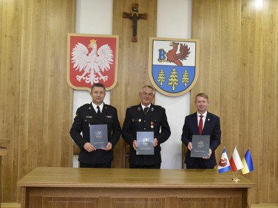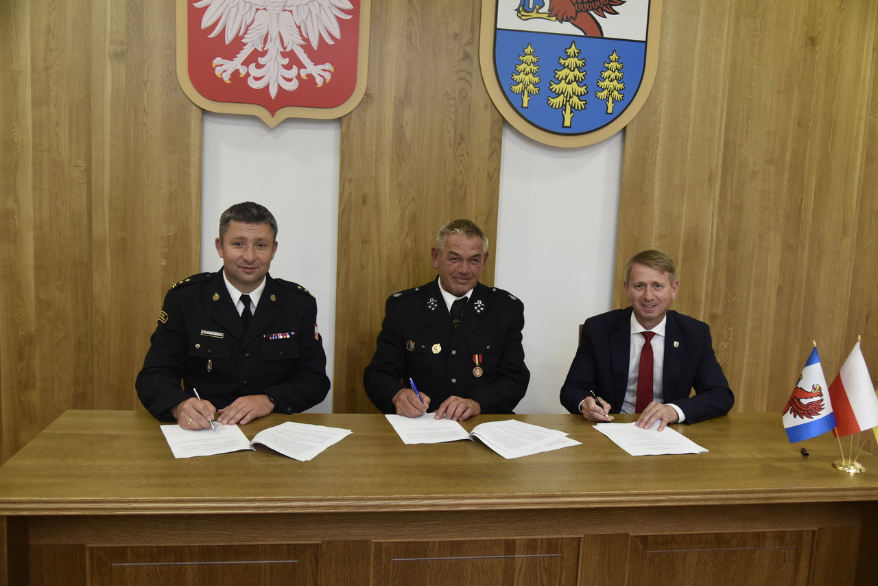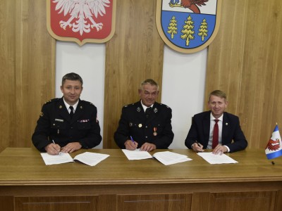 W dniu dzisiejszym (22.08) w Urzędzie Miejskim w Brusach zawarto porozumienie w sprawie włączenia jednostki Ochotniczej Straży Pożarnej w Męcikale do Krajowego Systemu Ratowniczo-Gaśniczego. Porozumienie podpisane przez Komendanta Państwowej Straży Pożarnej w Chojnicach Błażeja Chamier Cieminskiego, Burmistrza Brus Witolda Ossowskiego oraz Prezesa OSP Męcikał Stefana Ossowskiego, jest jednym z etapów mających na celu włączenie jednostki do KSRG. OSP Męcikał zostanie włączone do systemu na mocy decyzji Komendanta Głównego Państwowej Straży Pożarnej i będzie trzecią obok OSP Brusy i OSP Leśno jednostką z naszej gminy. Spotkanie było nie tylko okazją do rozmów o procedurach i zaletach wynikających z wpisu do KSRG, ale także o planach zmierzających do rozwoju jednostki.