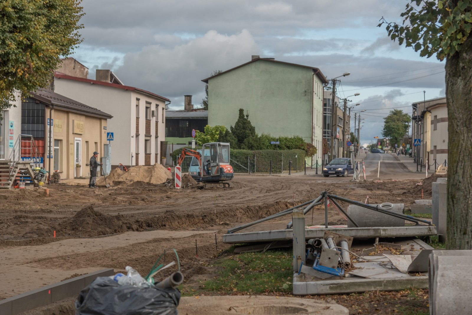- ul. Pocztowa – zakończone roboty branży sanitarnej, trwają roboty branży drogowej i elektrycznej, obowiązuje zmieniona organizacja ruchu