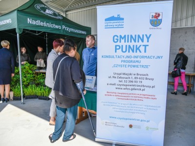 Ponadto przez kilka godzin można było zwiedzać PSZOK i przyjrzeć się pracy w tym miejscu. Z tej możliwości korzystały szczególnie dzieci ze żłobka, przedszkoli i szkół gminy Brusy z opiekunami. Różne ekostoiska przygotowały zaprzyjaźnione instytucje i organizacje: Zakład Zagospodarowania Odpadów w Nowym Dworze, Zaborski Park Krajobrazowy, gminny punkt Programu „Czyste Powietrze” oraz Nadleśnictwo Przymuszewo. Z ostatnimi z wystawców zrealizowano akcję „drzewko za elektrośmieci”. Przywożąc do PSZOKu zużyty sprzęt elektryczny można było otrzymać sadzonkę do swojego ogrodu.