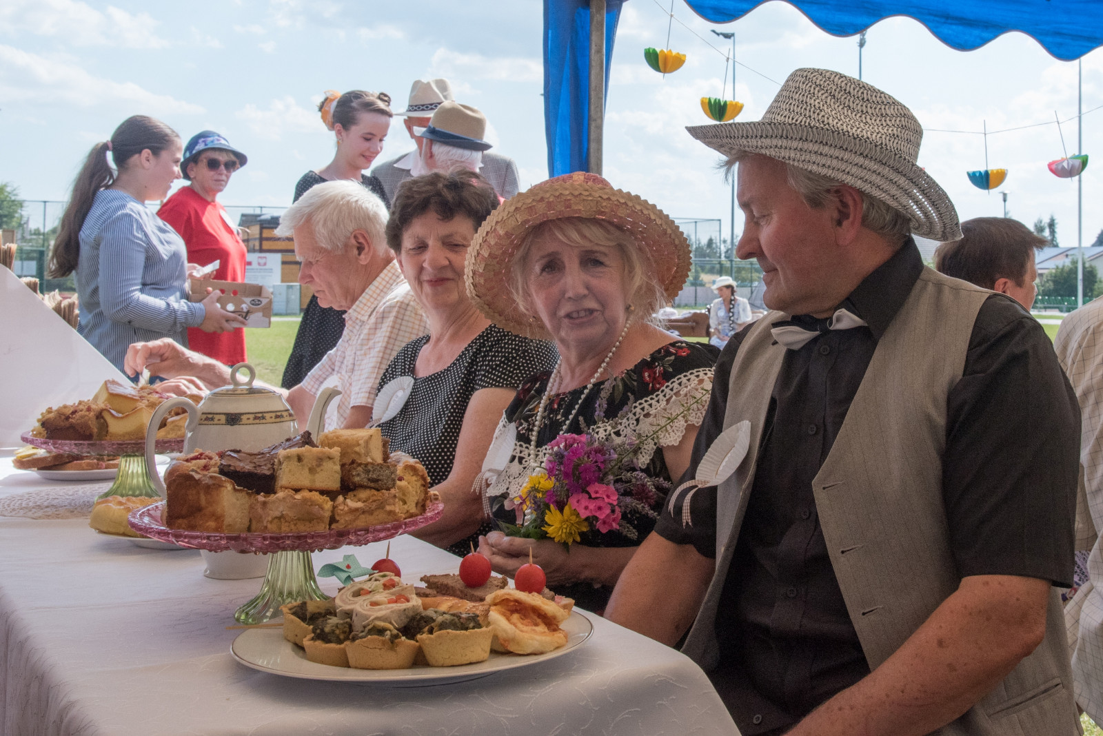 Wszystkich serdecznie witał Witold Ossowski Burmistrz Brus, Beata Kosecka kierownik bruskiej Placówki Wsparcia Dziennego oraz Ewa Kosiedowska Przewodnicząca Bruskiej Rady Seniorów. Jednym z głównych punktów wydarzenia był wybór Króla i Królowej Retro. Seniorzy w eleganckich strojach rywalizowali o tytuły, prezentując stylizacje pełne klasy i wdzięku. Spośród przebranych pań i panów wyłoniono królową retro – Elżbietę Pryba i króla retro – Mariana Wróblewskiego. Każdy z uczestników otrzymał z rąk Burmistrza Brus upominek. Dla uczestników przygotowano wiele atrakcji. Na stołach pojawiły się zarówno słodkie, jak i słone przekąski. Dodatkowo zorganizowano plener malarski czy grę w bingo. Podziwiać można było także prace uczestników Domu Dziennego Pobytu. Biesiadę poprowadził Kamil z Chojnic.