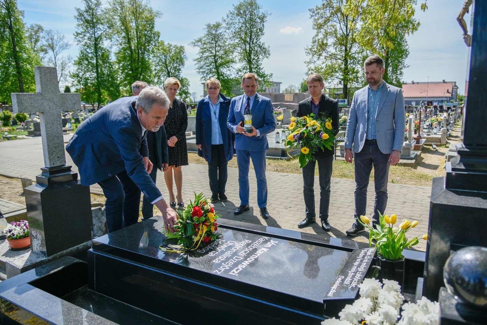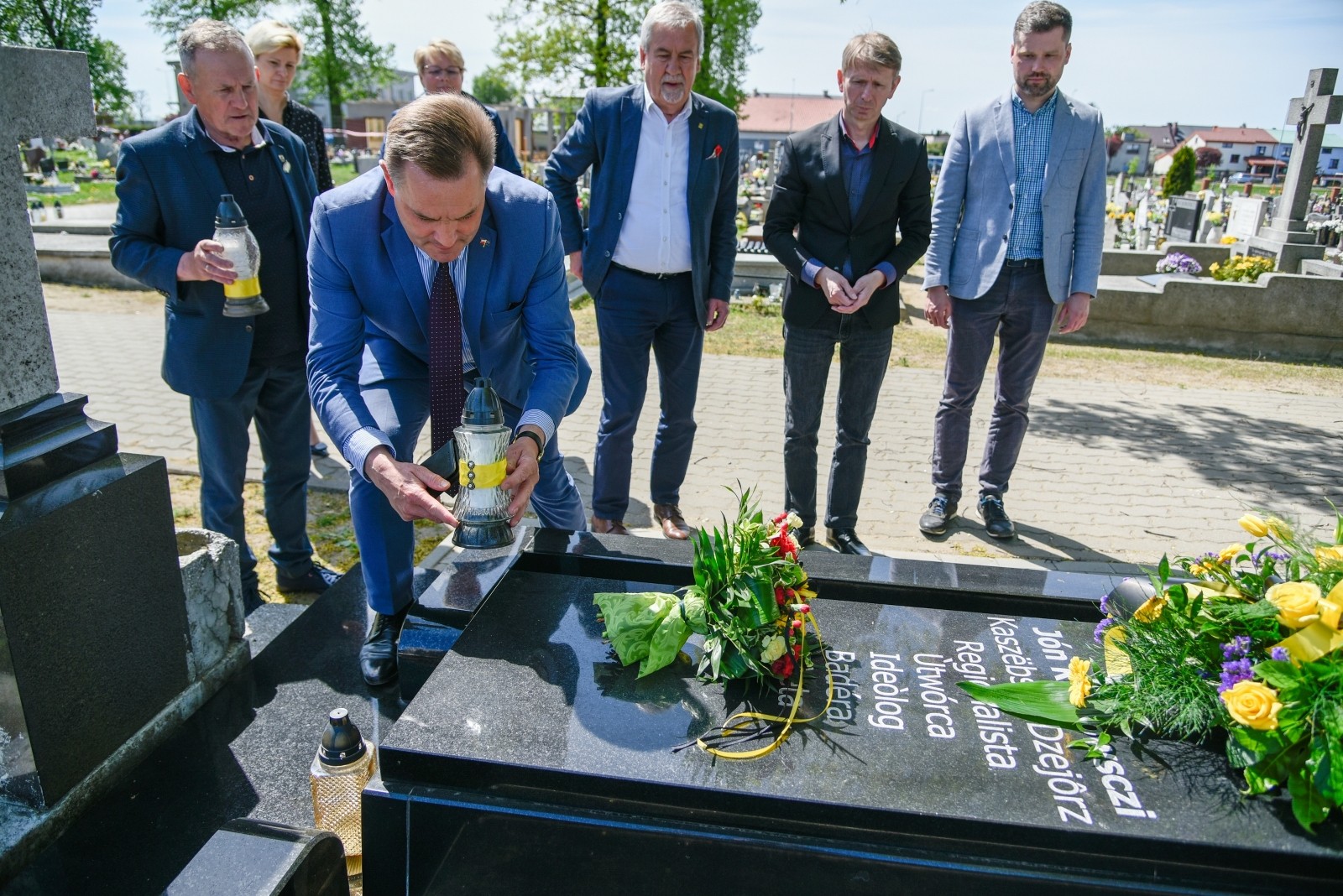 Wiązankę złożyła delegacja Gminy Brusy, Powiatu Chojnickiego i Zrzeszenia Kaszubsko – Pomorskiego: burmistrz Witold Ossowski, wicestarosta Mariusz Paluch, sekretarz Gminy Brusy Mariola Rodzeń, prezes Zarządu Głównego ZKP Jan Wyrowiński, wiceprezes Zarządu Głównego ZKP i prezes burskiego oddziału Stanisław Kobus, dyrektor Biura ZKP Łukasz Richert oraz dyrektor bruskiego Centrum Kultury i Biblioteki im. Jana Karnowskiego Anna Orlikowska.