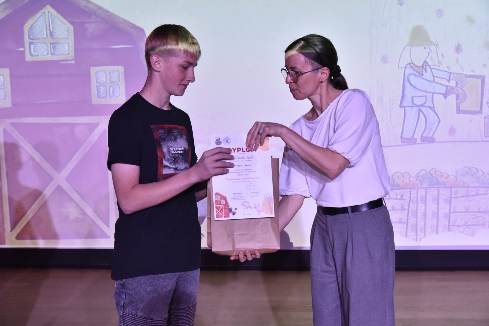 Nagrody laureatom konkursów wręczyli: zastępca burmistrza Brus Krzysztof Gierszewski, zastępca dyrektora Centrum Kultury i Biblioteki Mirosław Stoltmann oraz członkowie komisji konkursowych. Galę wręczenia nagród poprowadziła Renata Goebel, instruktor Centrum Kultury i Biblioteki, a swoim występem ubogaciły ją Zuzanna Pacak i Nina Stoltmann.