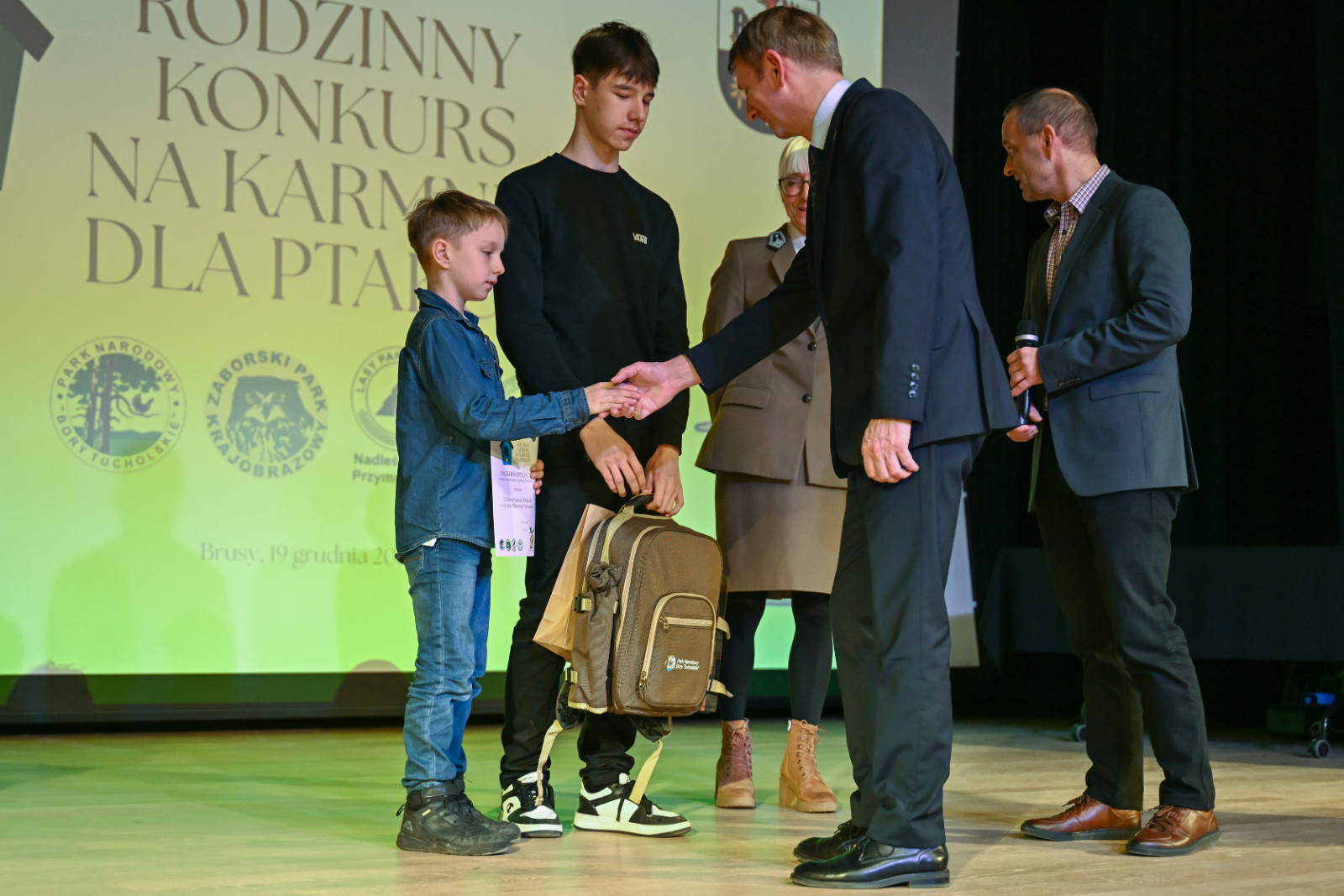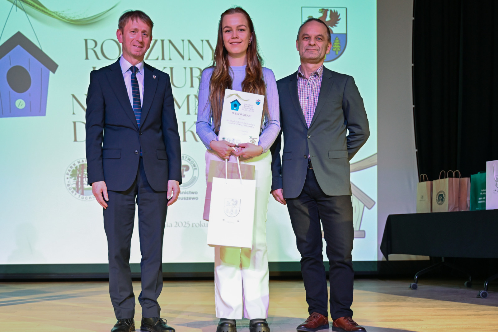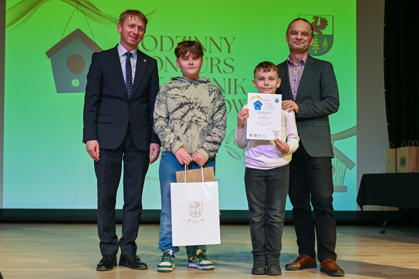 Nagrody laureatom wręczyli: Witold Ossowski Burmistrz Brus, Magdalena Kochanowska reprezentująca Park Narodowy „Bory Tucholskie”, Mariusza Grzempa Kierownik Zaborskiego Parku Krajobrazowego oraz Agnieszka Cysewska reprezentująca Nadleśnictwo Przymuszewo.