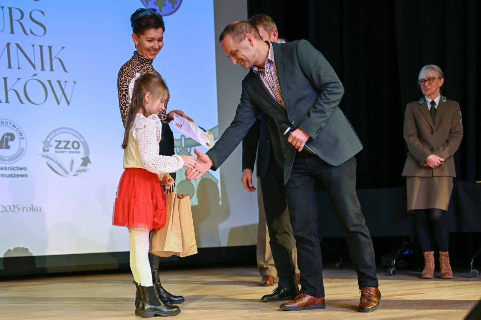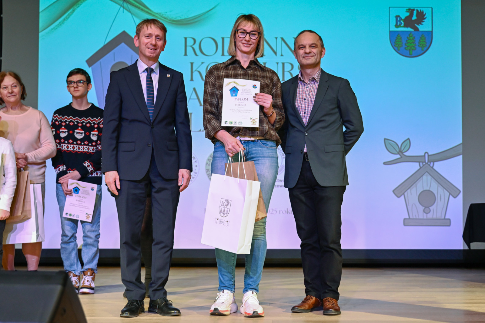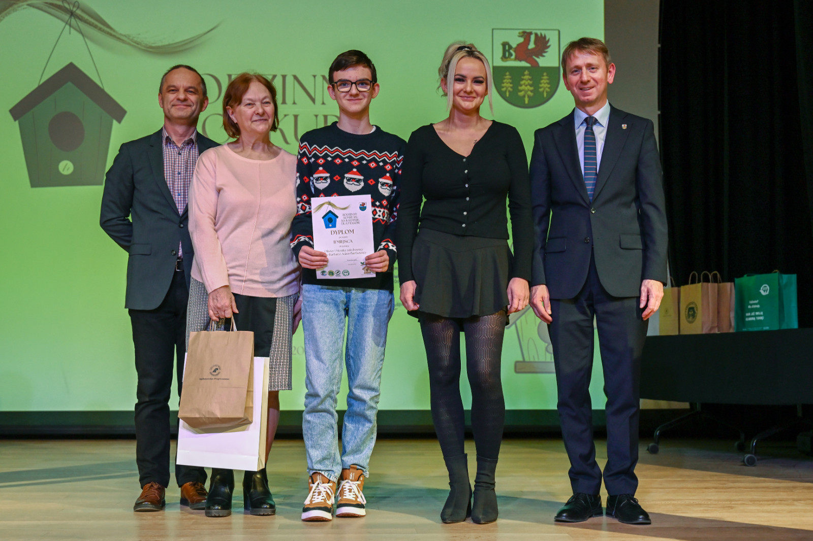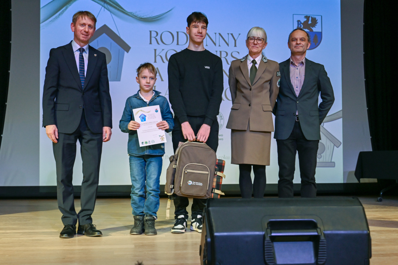 Nagrody laureatom wręczyli: Witold Ossowski Burmistrz Brus, Magdalena Kochanowska reprezentująca Park Narodowy „Bory Tucholskie”, Mariusza Grzempa Kierownik Zaborskiego Parku Krajobrazowego oraz Agnieszka Cysewska reprezentująca Nadleśnictwo Przymuszewo.