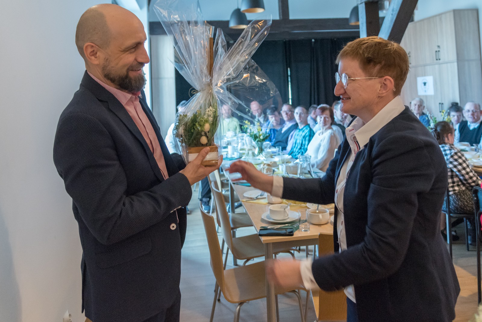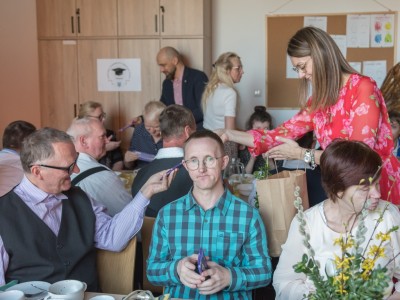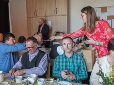 Śniadanie odbyło się w ciepłej, świątecznej atmosferze w Szopie Kreatywności, która mieści się w bezpośrednim sąsiedztwie ŚDS. Było ono okazją do wspólnego świętowania zbliżającej się Wielkanocy, dzielenia się radością oraz budowania więzi wśród uczestników i przyjaciół ŚDS. Serdeczne życzenia zgromadzonym złożyli zastępca burmistrza Brus Krzysztof Gierszewski oraz w imieniu Środowiskowego Domu Samopomocy kierownik Kamila Warda.