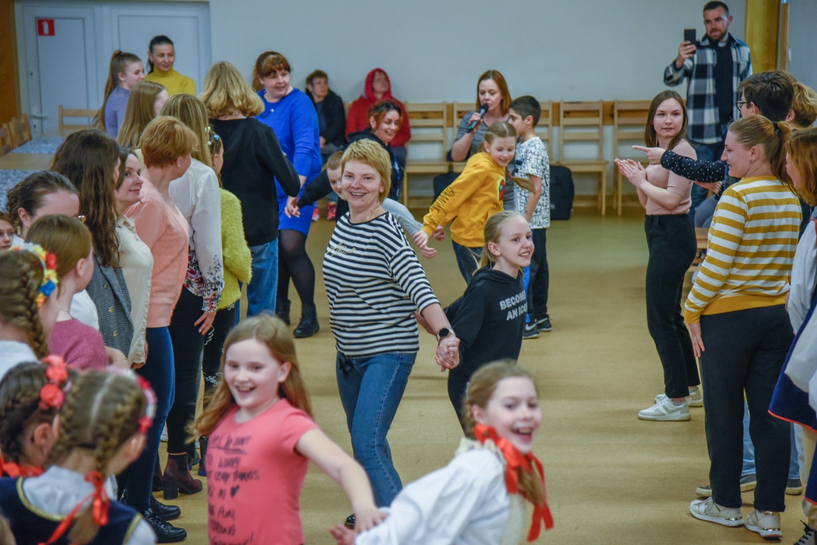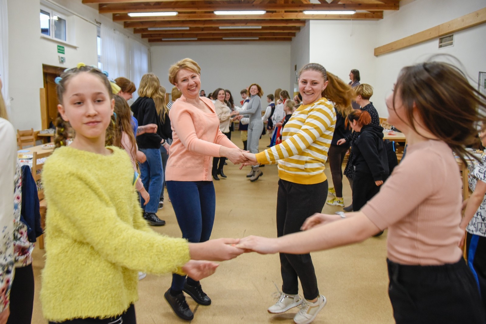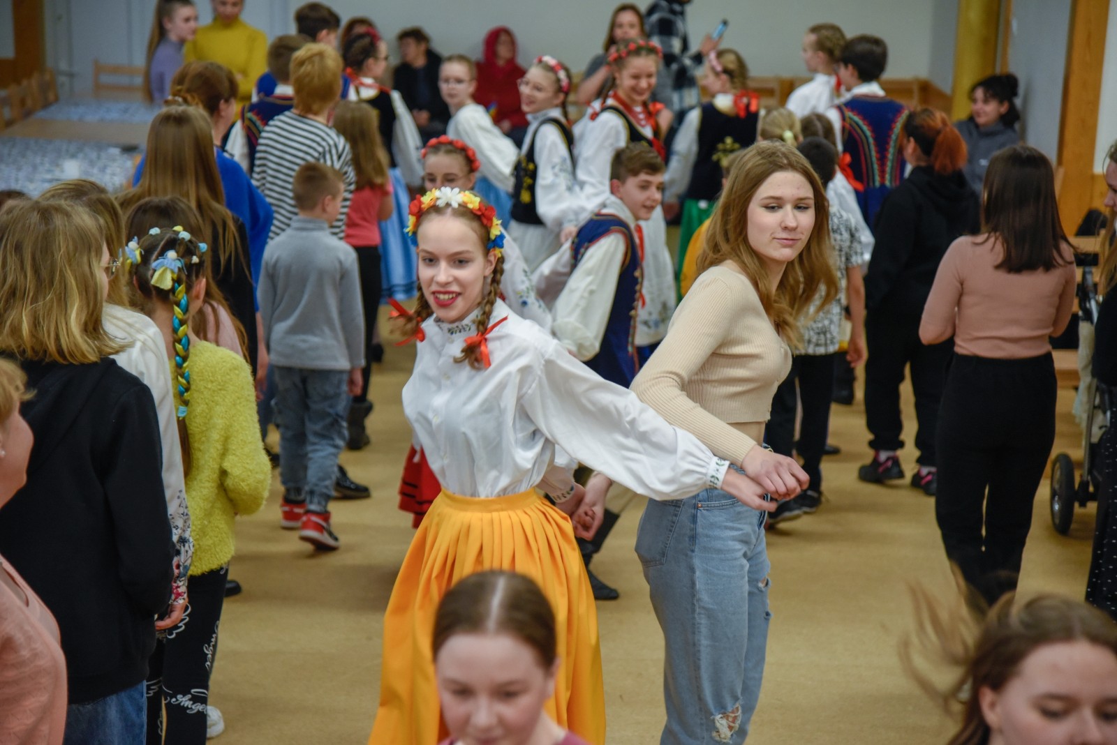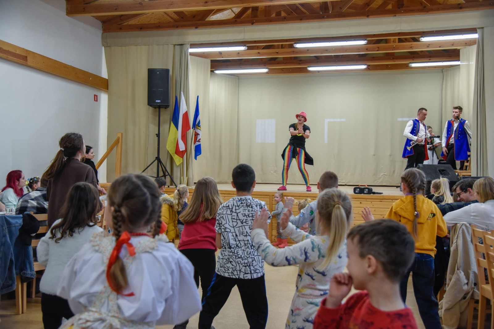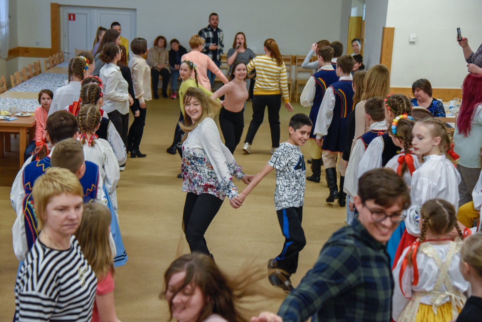 Podczas spotkania wystąpiły i zapraszały do wspólnej zabawy dziecięce grupy taneczne oraz kapela Zespołu Pieśni i Tańca Krëbane. Swoje talenty śpiewacze, muzyczne i poetyckie zaprezentowały Aleksandra, Maiia i Sofia z Ukrainy. Najmłodszych gości kreatywnie zabawiała Anna Sikora. Integrację uzupełnił słodki poczęstunek przy kawie.
