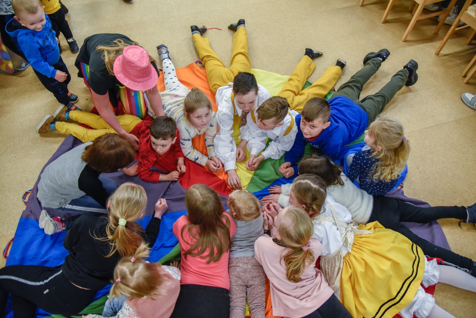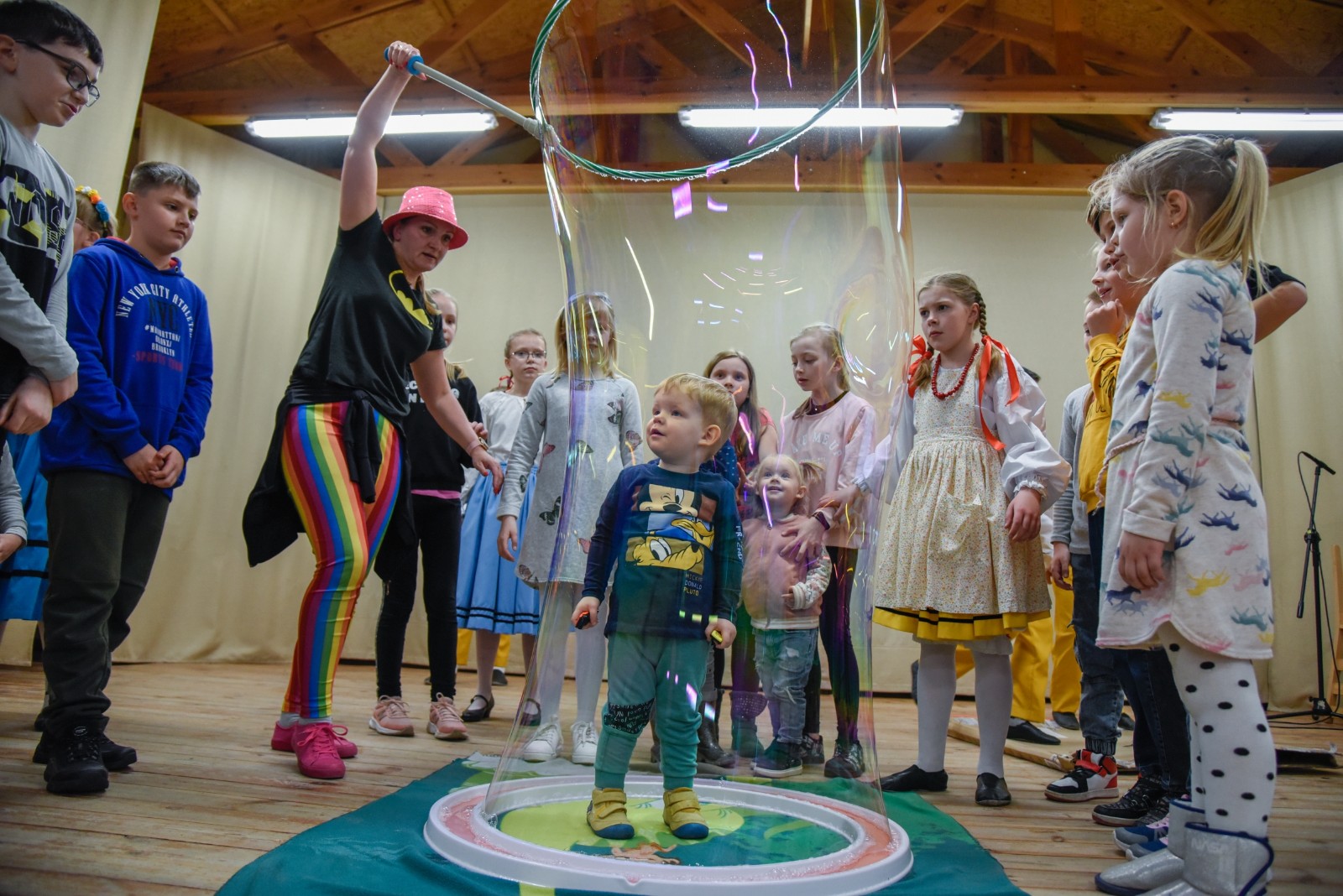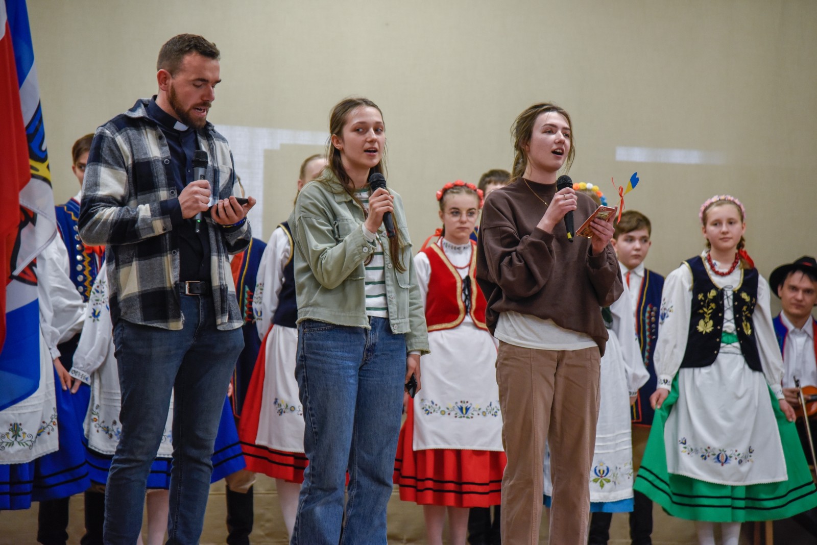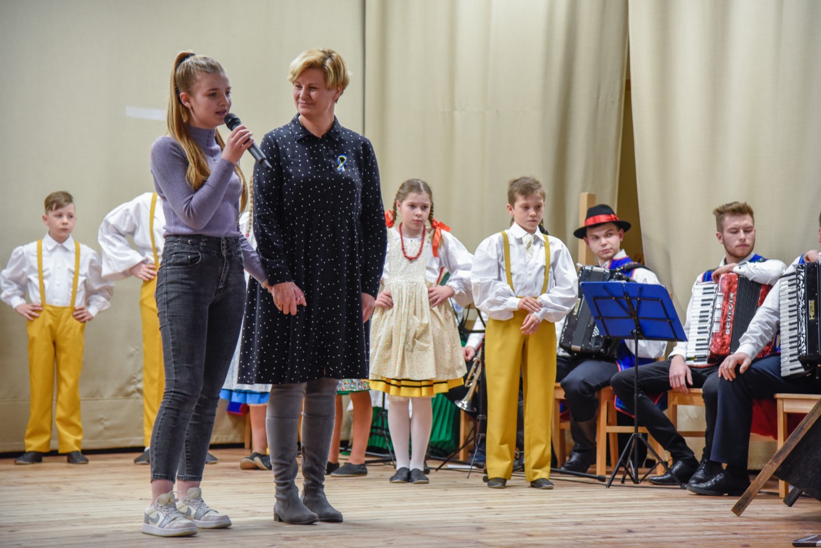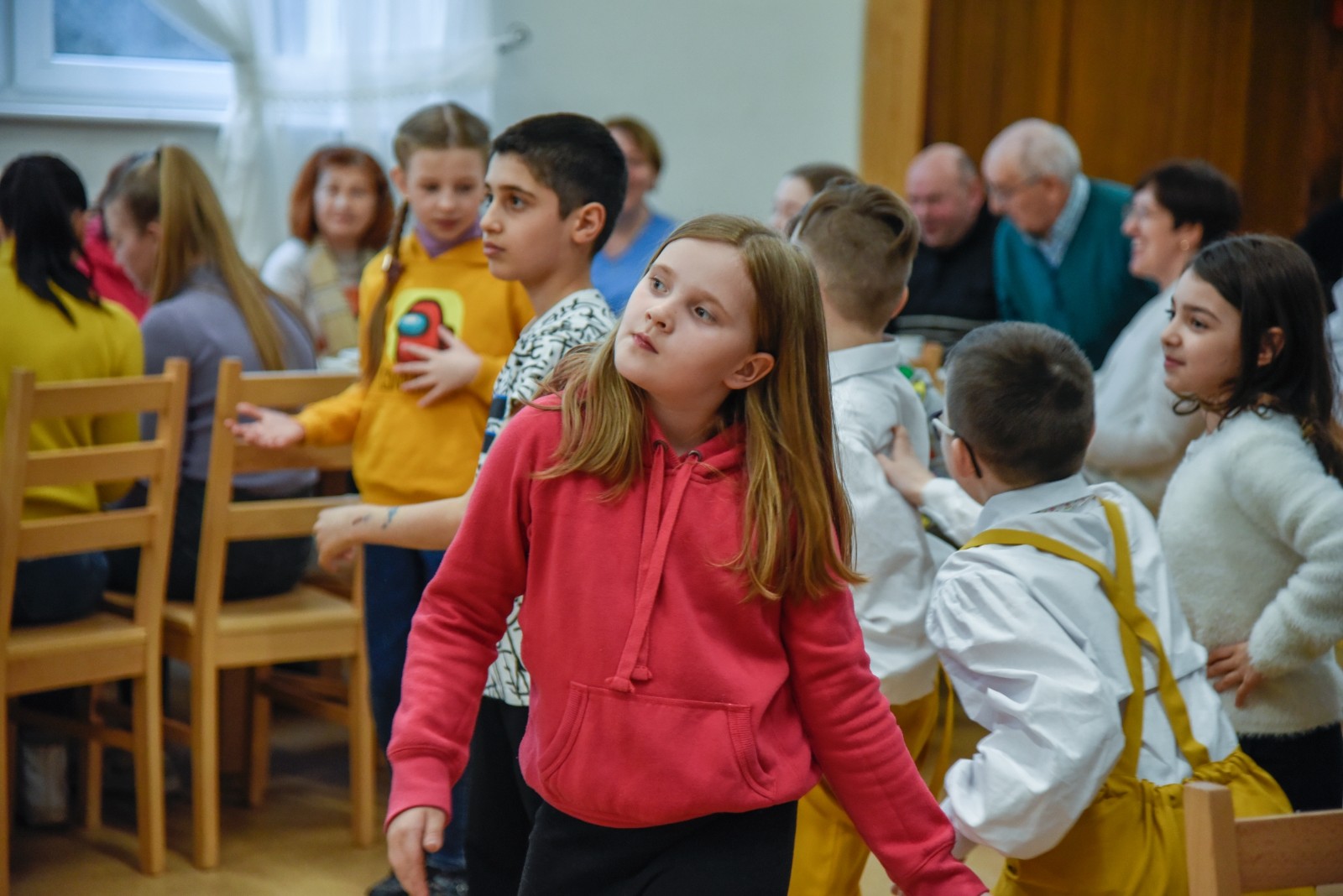 Podczas spotkania wystąpiły i zapraszały do wspólnej zabawy dziecięce grupy taneczne oraz kapela Zespołu Pieśni i Tańca Krëbane. Swoje talenty śpiewacze, muzyczne i poetyckie zaprezentowały Aleksandra, Maiia i Sofia z Ukrainy. Najmłodszych gości kreatywnie zabawiała Anna Sikora. Integrację uzupełnił słodki poczęstunek przy kawie.