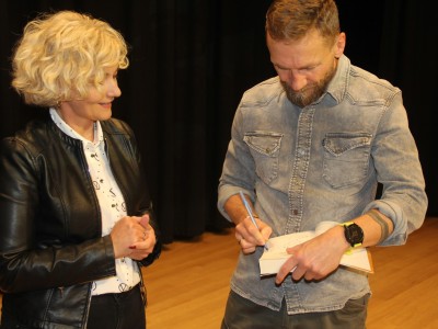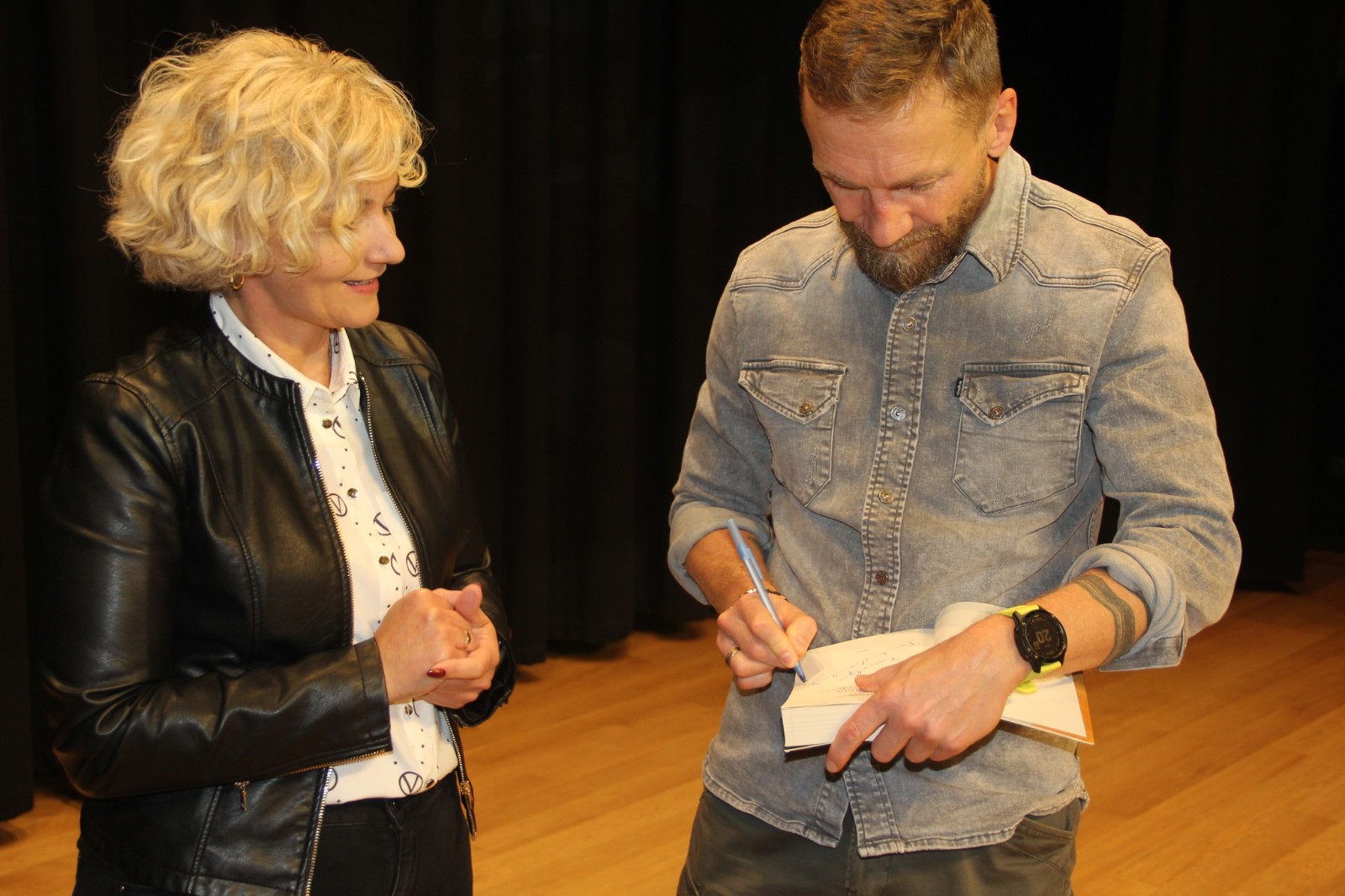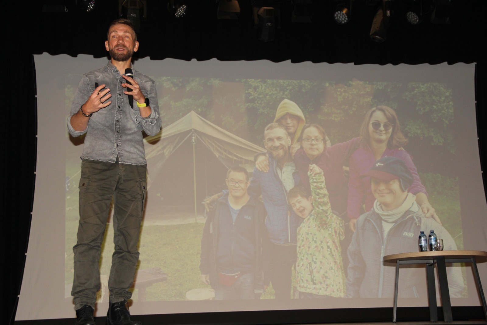 Fani Kossakowskiego wypełnili salę centrum kultury w Brusach po brzegi. Wśród publiczności byli uczestnicy i uczestniczki Środowiskowego Domu Samopomocy w Brusach oraz Warsztatu Terapii Zajęciowej z Brus, Czerska i Chojnic. Wszyscy mieli okazję porozmawiać ze swoim ulubieńcem o jego podróżniczych doświadczeniach, realizacji programu "Down the Road" i przeżyciach, z nim związanych. Nie zabrakło oczywiście serdecznych uścisków dłoni i książkowych autografów.
