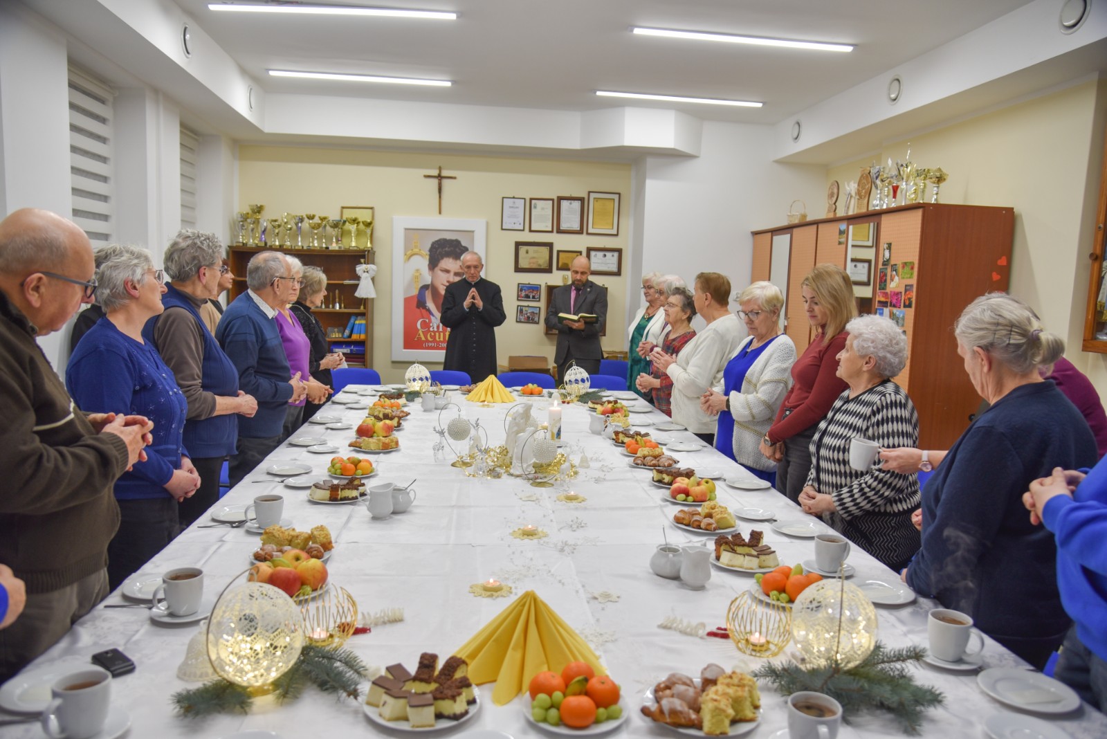 Z myślą o seniorach z Parafii Wszystkich Świętych odbyło się poniedziałkowe (16.12) spotkanie zorganizowane w Domu Nawiedzenia w Brusach. Była to okazja, aby poczuć nastrój nadchodzących Świąt Bożego Narodzenia, spotkać się, porozmawiać i złożyć serdeczne życzenia. W spotkaniu wzięli udział zastępca burmistrza Brus Krzysztof Gierszewski i ks. kan. Tadeusz Rybiński. Organizacją zajęli się prezes Ewa Czapiewska i członkowie Stowarzyszenia Rodzin Katolickich.