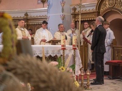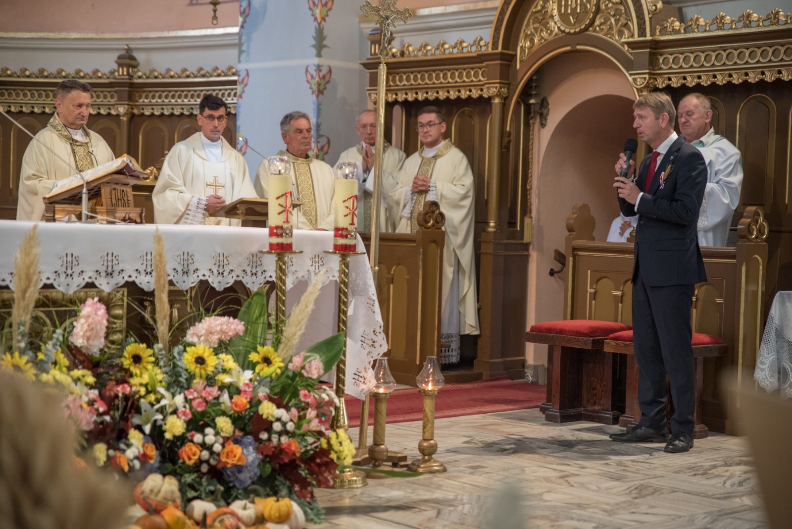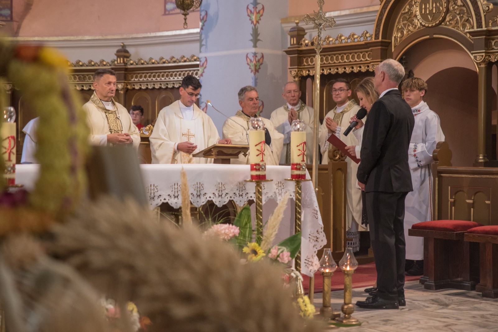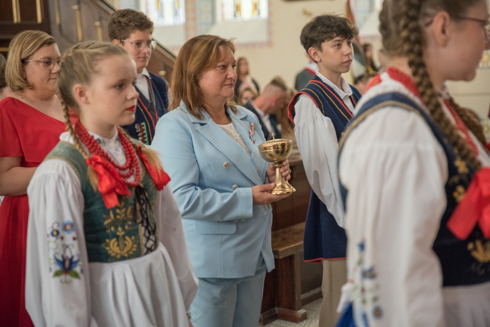 Zaborskie Dożynki Gminne rozpoczęły się w kościele parafialnym w Brusach uroczystą mszą świętą, której przewodniczył i homilię wygłosił ks. Rafał Grot. Podczas liturgii poświęcono chleb i wieńce dożynkowe – symbol dostatku, wdzięczności i zamkniętego cyklu całorocznej pracy rolników, ogrodników, przetwórców i działkowców.