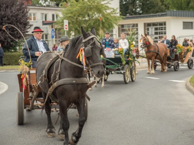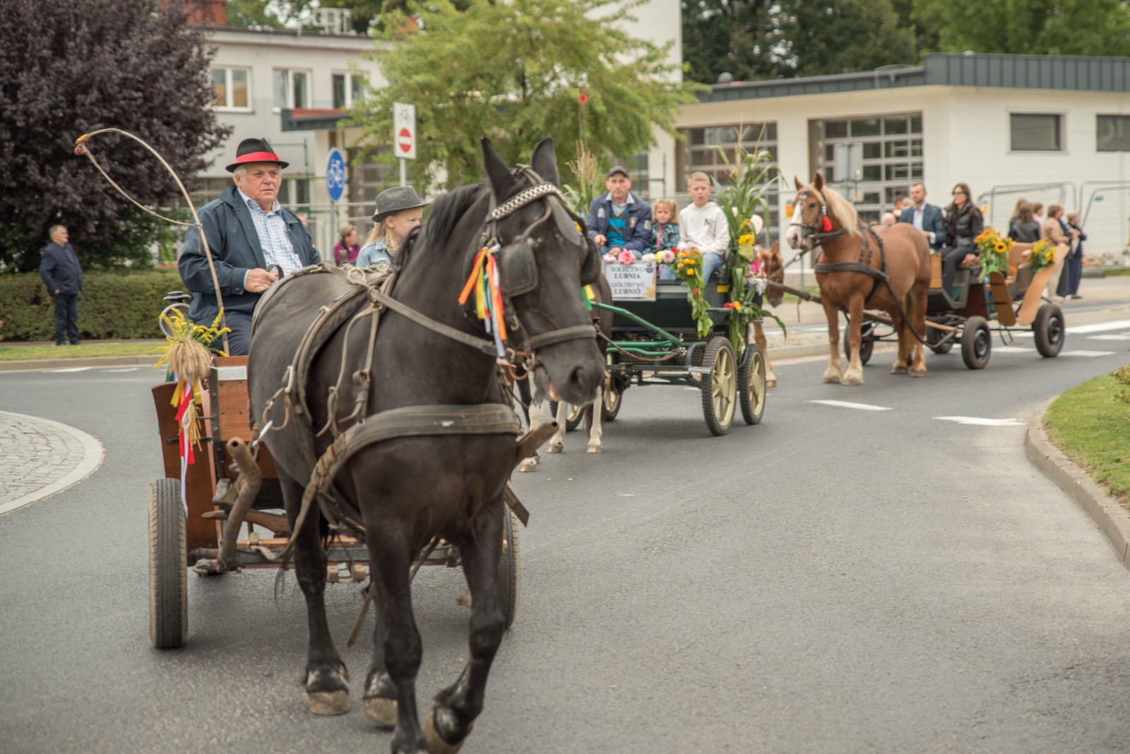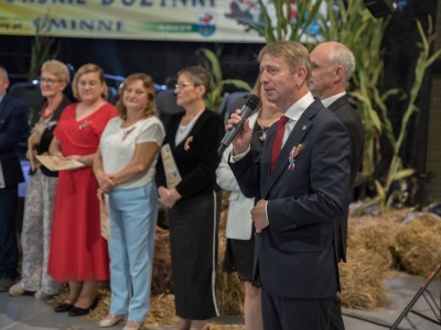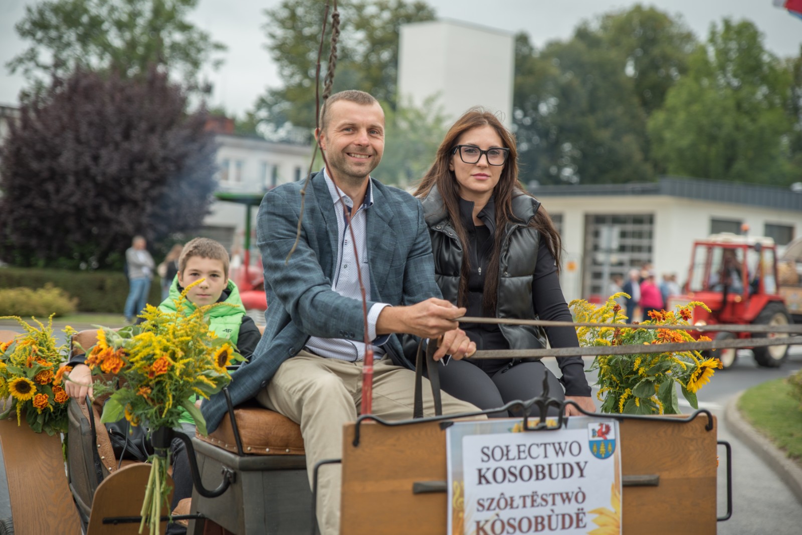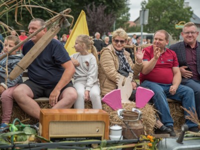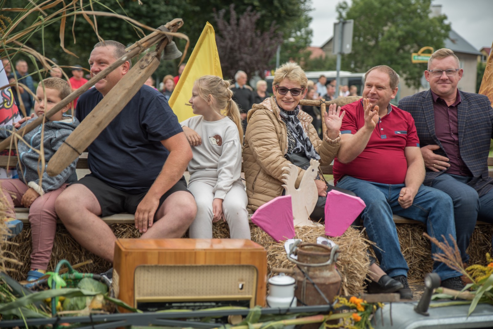Ogromne zaangażowanie mieszkańców naszej gminy sprawiło, że korowód dożynkowy był wyjątkowo barwny i efektowny. Można było podziwiać 36 pojazdów – 3 konne i 33 mechaniczne, starannie udekorowane dożynkowymi motywami.