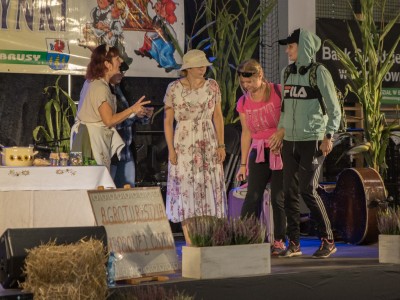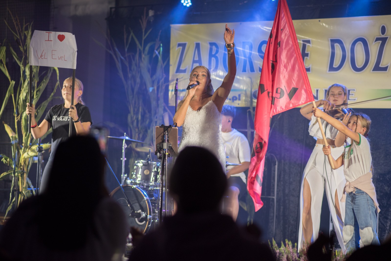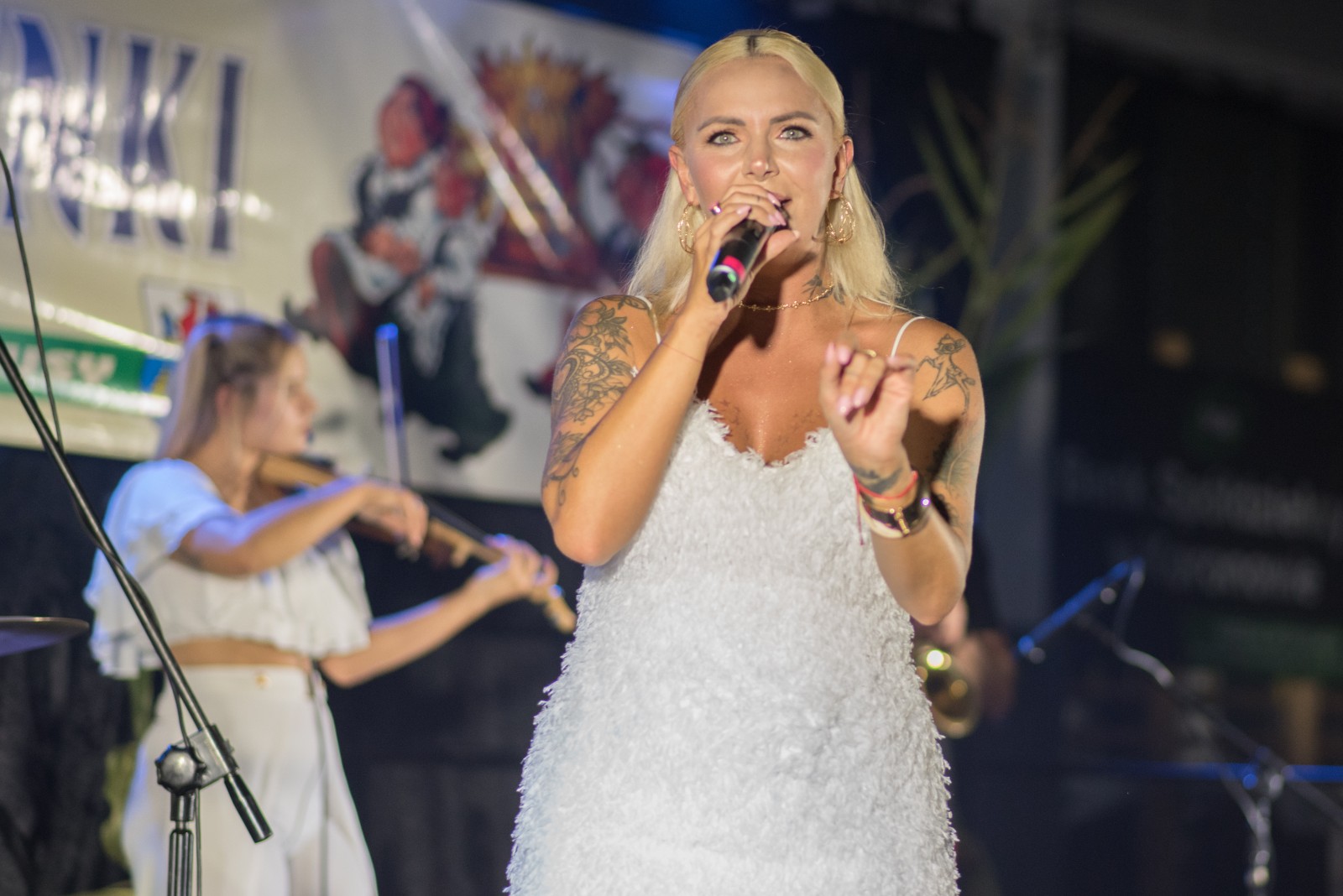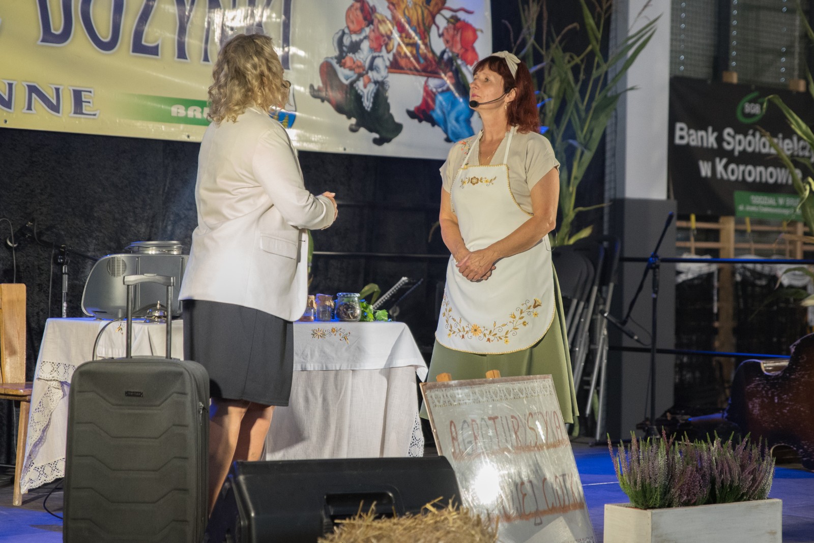 Na scenie dożynkowej wystąpili m.in. Zespół Pieśni i Tańca „Krëbane”, Kapela Krëbane, kabaret „Świetlicowe Babeczki” z Cekcyna oraz gwiazda wieczoru – Vel Evel.