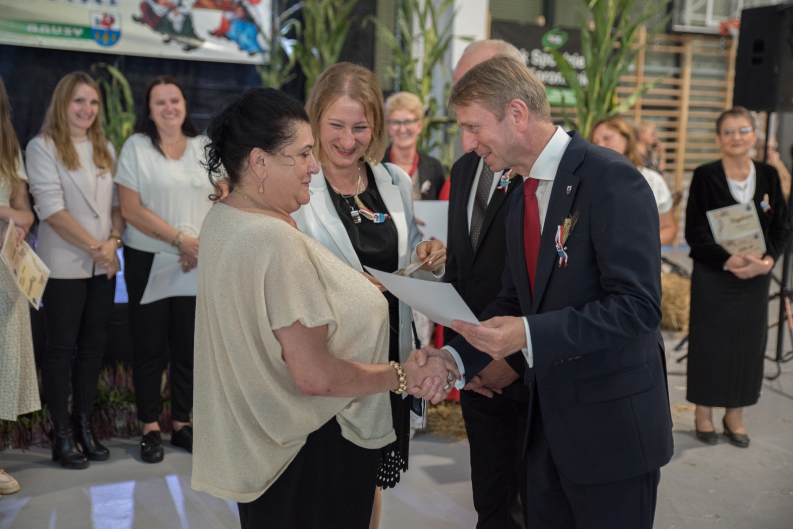 Podczas uroczystości rozstrzygnięto także gminny etap konkursu „Piękna Wieś Pomorska 2025”. W kategorii zagroda zwyciężyli Państwo Małgorzata i Wojciech Hamerscy, natomiast w kategorii wieś – Czyczkowy. Laureaci konkursu otrzymali nagrody ufundowane przez Gminę Brusy oraz Firmę Sylva Sp. z o.o.