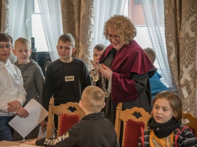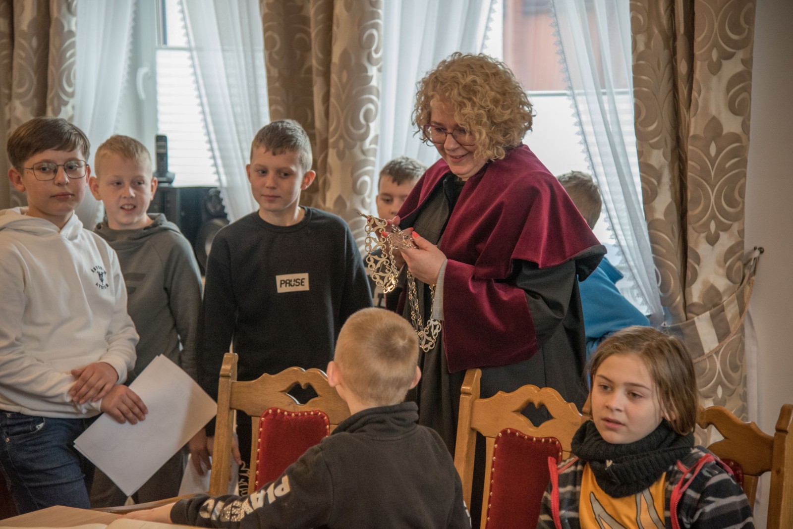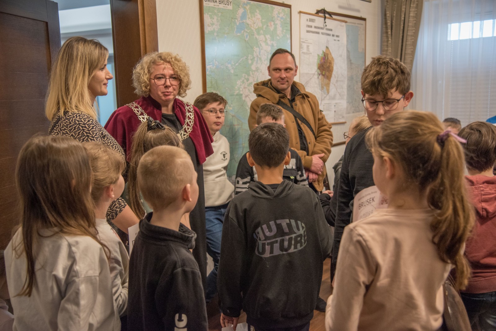 O pracy samorządowej i działaniu Urzędu Miejskiego opowiedziała gościom sekretarz Gminy Brusy Mariola Rodzeń oraz dyrektor Wydziału Organizacyjno - Prawnego Eliza Szczesna. Dzieci zwiedziły między innymi biuro Burmistrza Brus, sale konferencyjną, salę ślubów, zapoznając się z obowiązkami kierownika Urzędu Stanu Cywilnego oraz biuro ewidencji ludności.
