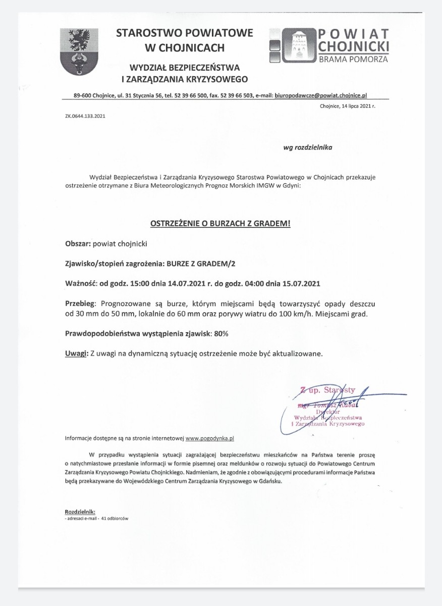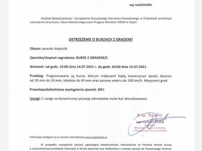 Uwaga burze z gradem! Ostrzeżenie 2 stopnia.