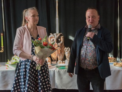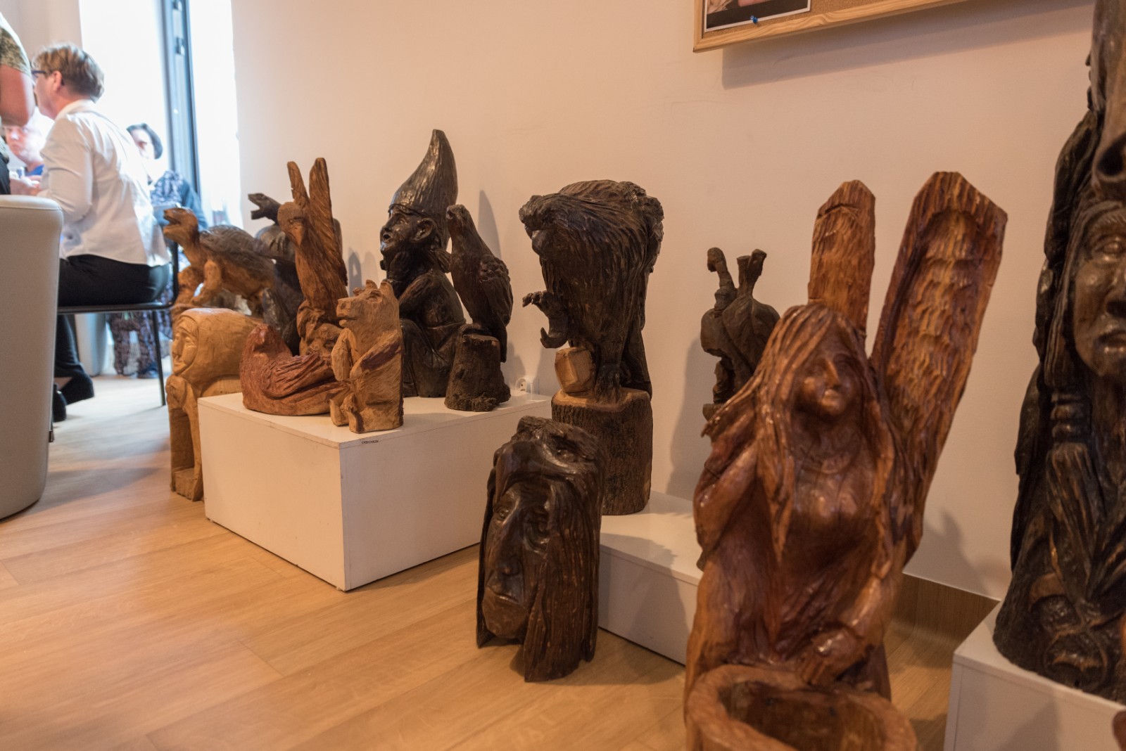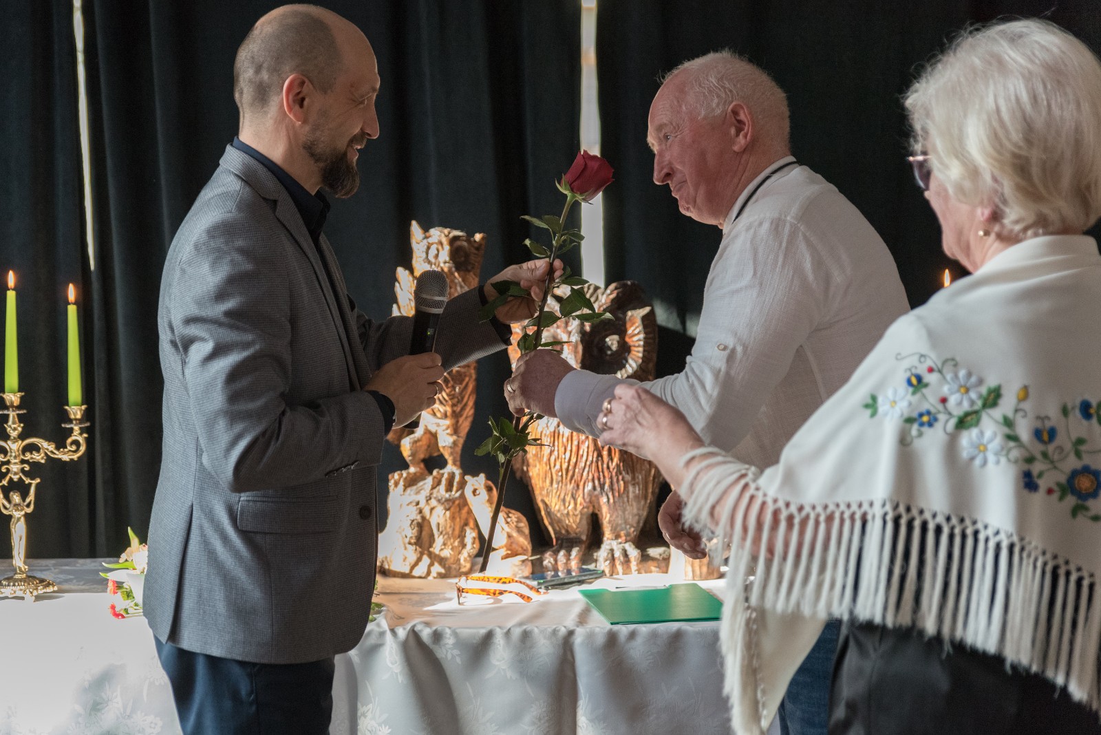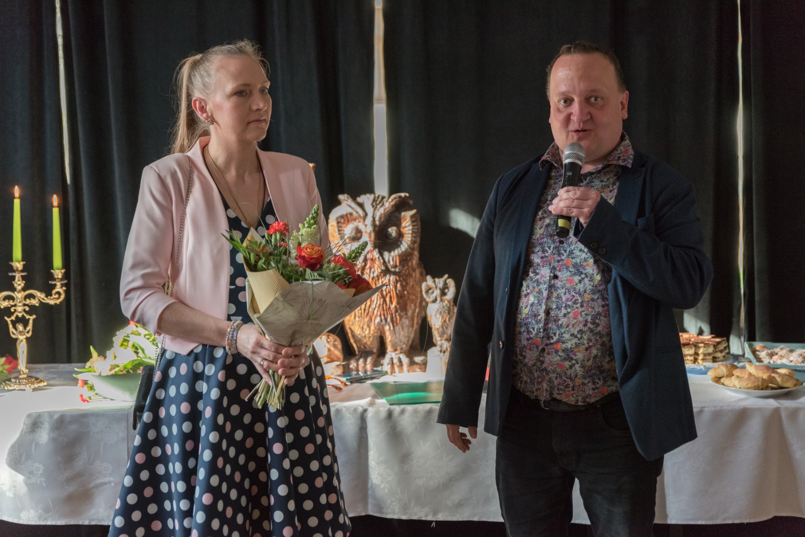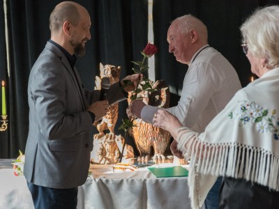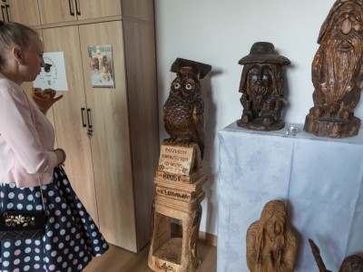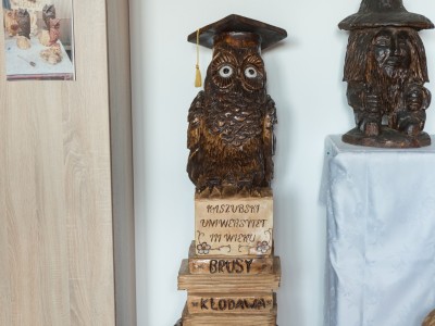 Pasji, talentu, zaangażowania i stworzonych rzeźb gratulowali Grzegorzowi Szopińskiemu zastępca burmistrza Brus Krzysztof Gierszewski, sekretarz Gminy Brusy Mariola Rodzeń, rektor KUTW w Brusach Ewa Czapiewska oraz jego członkowie, dyrektor Centrum Kultury i Biblioteki Anna Orlikowska oraz rodzina, przyjaciele i sympatycy twórczości rzeźbiarskiej pana Grzegorza.