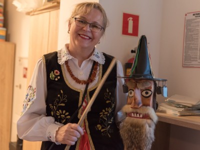 Grzegorz Szopiński - rzeźbiarz pasjonat, ur. 1 kwietnia 1962 roku w Kłodawie, członek KUTW w Brusach. Pierwsze kroki w rzeźbiarstwie stawiał już w młodości, podczas nauki w Szkole Podstawowej w Jarcewie. Początkowo tworzył w mydle, później w korze drzewa topolowego. Po krótkim czasie pielęgnowania artystycznej pasji, porzucił ją na wiele lat. Powrócił do niej dopiero pod wpływem twórczości ludowej, po wizycie w Muzeum - Kaszubskim Parku Etnograficznym we Wdzydzach Kiszewskich oraz Skansenie Józefa Chełmowskiego w 2018 roku. Od tej pory wciąż doskonali swoje umiejętności. Przez kilka ostatnich lat jego prace można było oglądać na wystawach w: Lipuszu, Chojnicach, Swornegaciach, czy rodzinnej Kłodawie, oraz w muzeach w Bytowie, Tucholi i Słupsku. Rzeźby jego autorstwa spotkać można także w przestrzeni publicznej, a samego artystę również podczas jarmarków, kiermaszów i kaszubskich zjazdów. Jest laureatem Konkursu Sztuki Ludowej im. Józefa Chełmowskiego w Brusach, zdobywcą Nagrody Wójta za 2022 rok w kategorii „Kultura i Promocja Gminy”, oraz nagrody w kategorii „Osobowość” w chojnickich „Dokonaniach Roku 2024”.