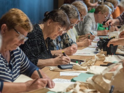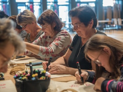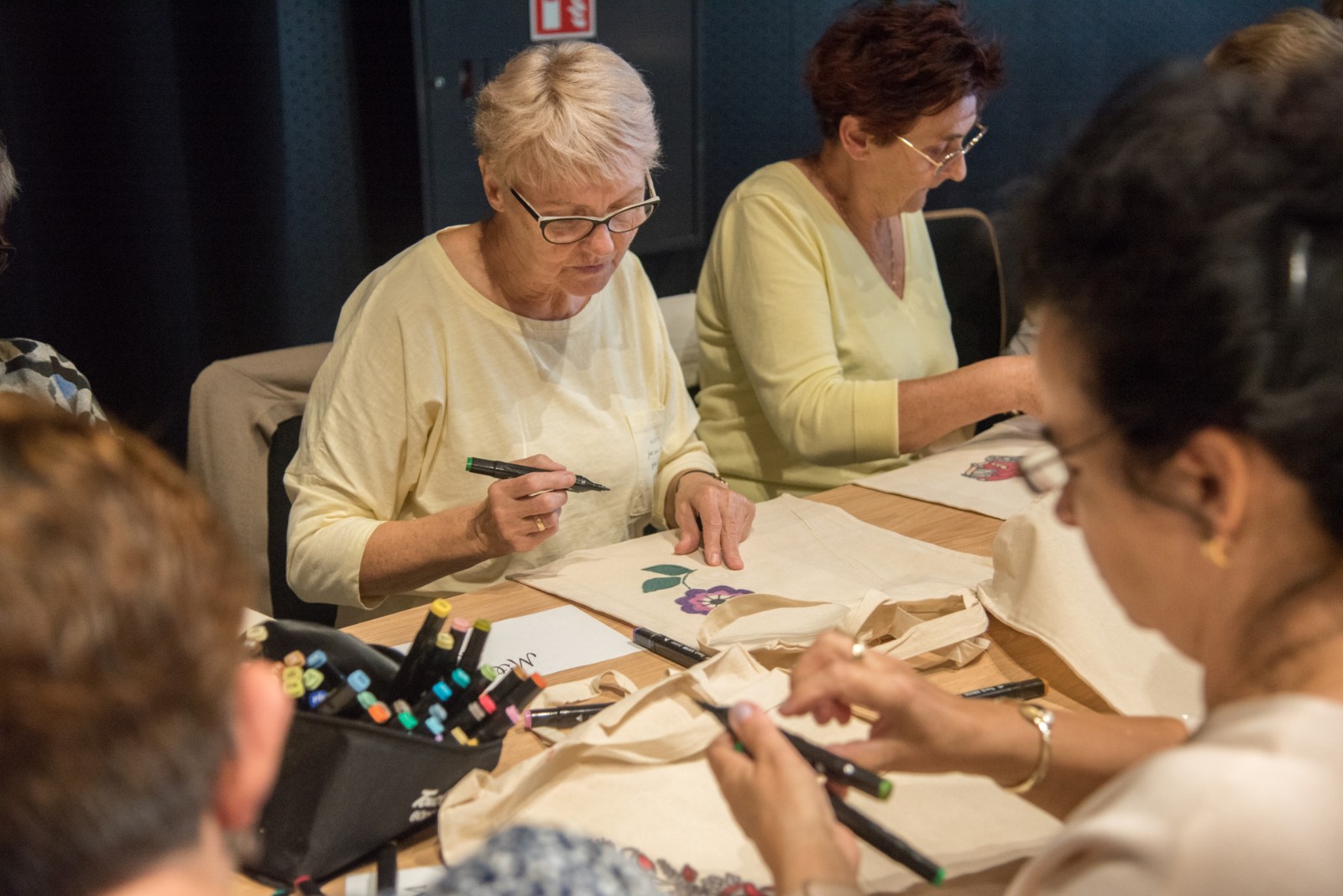 Warsztaty odbyły się pod okiem instruktorek i uczestników Warsztatu Terapii Zajęciowej, którzy zaproponowali seniorom ozdabianie materiałowych toreb. Pięknie ozdobione ekotorby będą mogły być wykorzystane na co dzień np. podczas zakupów, a samodzielnie wykonane zdobienia nadają im wyjątkowości.