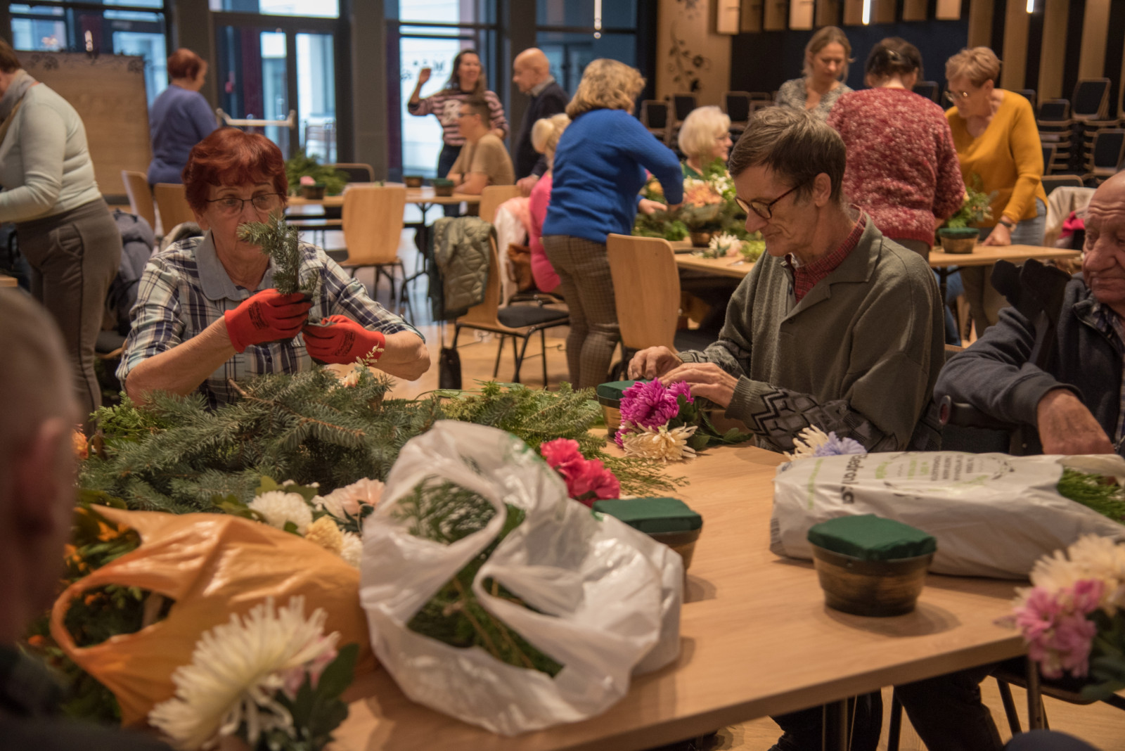 Dziś, 29 października seniorzy z gminy Brusy wzięli udział w warsztatach rękodzielniczych, podczas których przygotowywali stroiki na groby swoich bliskich w związku ze zbliżającym się Świętem Zmarłych. Warsztaty nie tylko pozwoliły seniorom na twórczą ekspresję, ale także na wspólne spędzenie czasu i budowanie więzi w lokalnej społeczności.