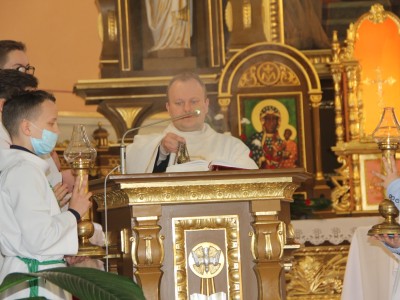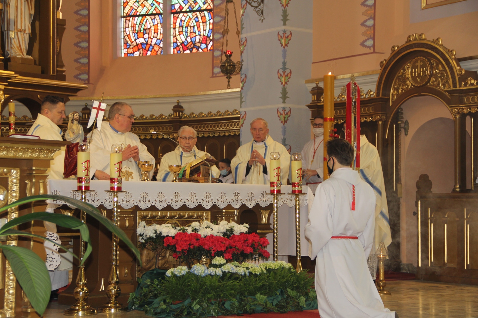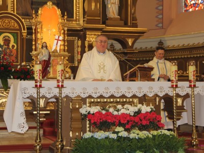 Mszy przewodniczył ks. Maciej Kobus, a okolicznościową homilię wygłosił ks. Andrzej Węsierski. Wśród kapłanów koncelebrujących Eucharystię byli również: ks. proboszcz Jan Flaczyński, ks. prałat Zdzisław Wirwicki, ks. Tadeusz Rybiński oraz ks. Rafał Grot. Chór Lutnia z Brus, pod batutą organisty Kazimierza Wierzchowskiego, zadbał o oprawę muzyczną Eucharystii.