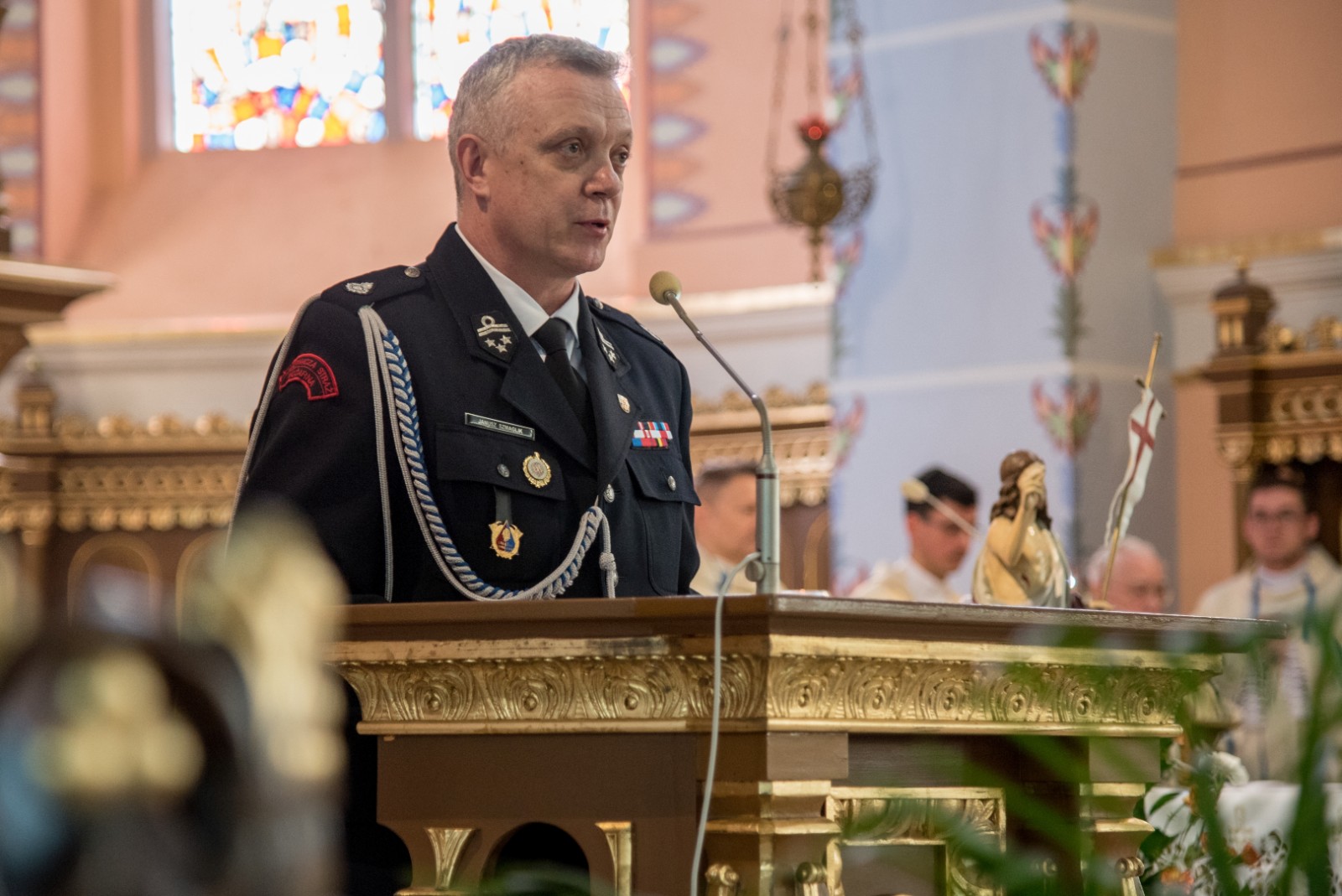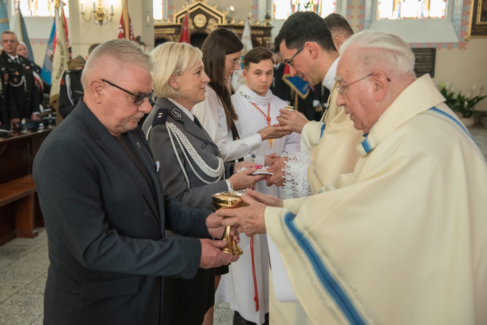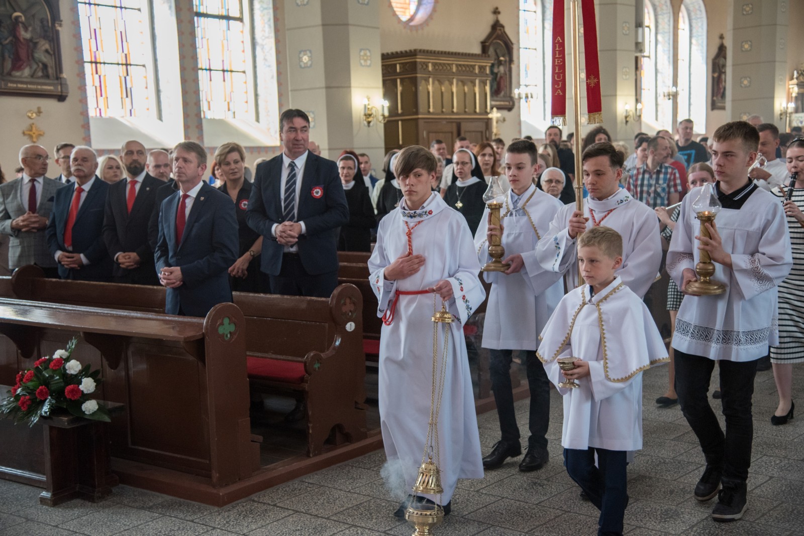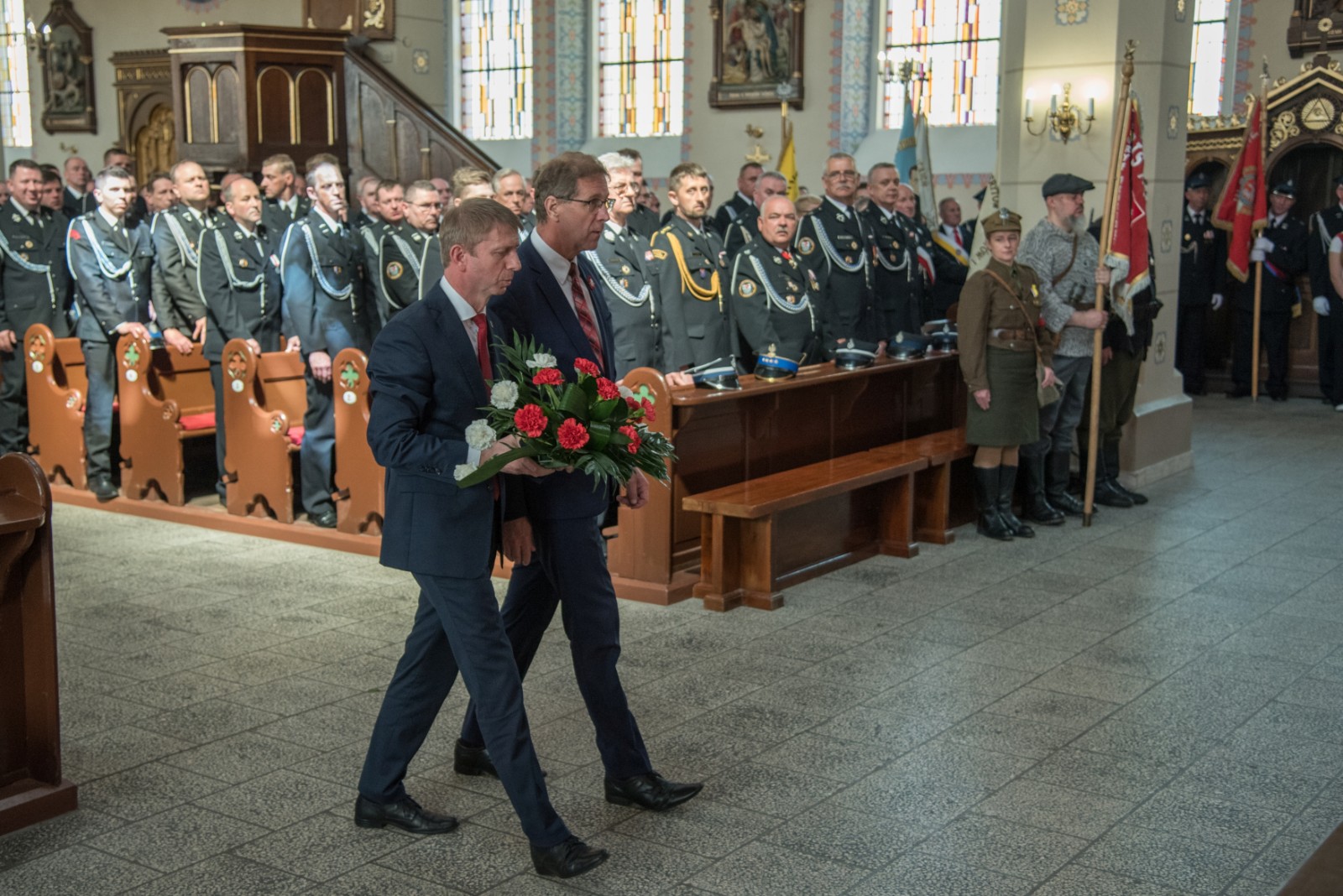 We mszy uczestniczyli przedstawiciele władz samorządowych, delegacje organizacji i szkół z pocztami sztandarowymi, przedstawiciele Policji, druhowie jednostek Ochotniczej Straży Pożarnej z gminy Brusy oraz mieszkańcy. Eucharystii przewodniczyli kapłani Parafii Wszystkich Świętych w Brusach. Okolicznościową homilię wygłosił ks. Rafał Grot.