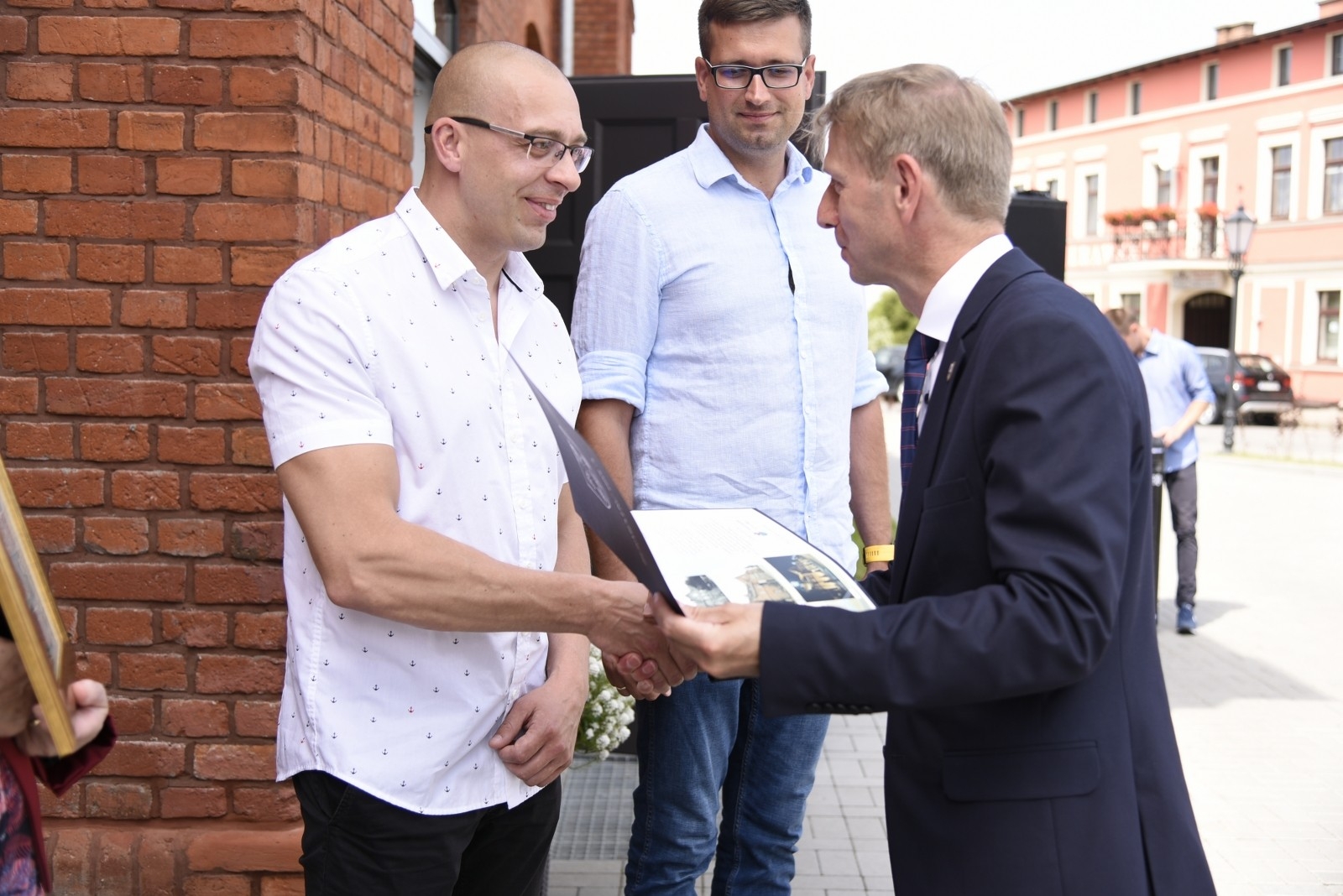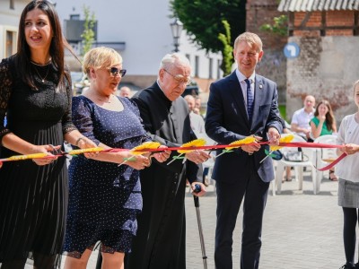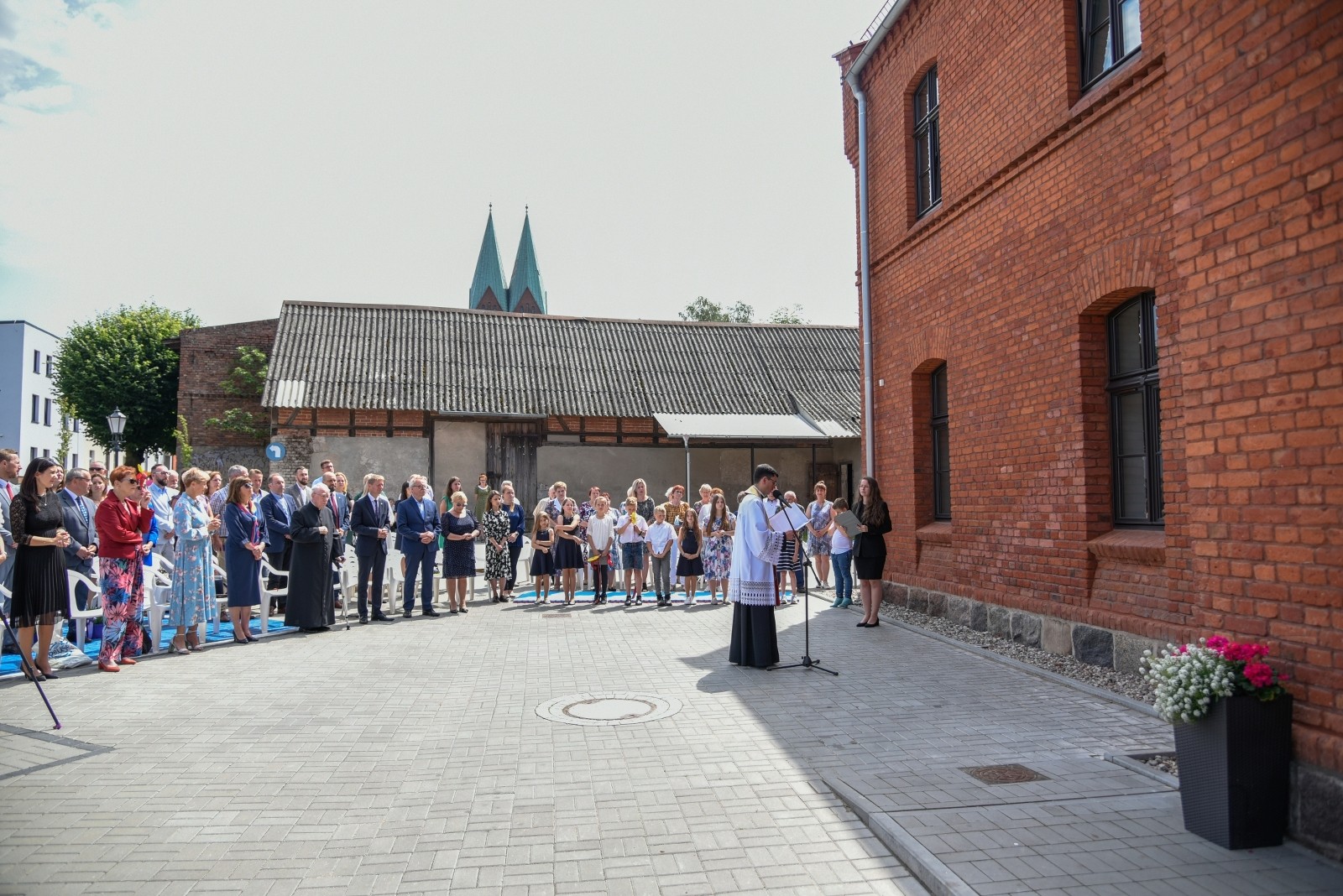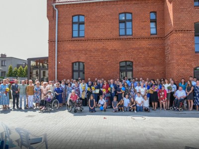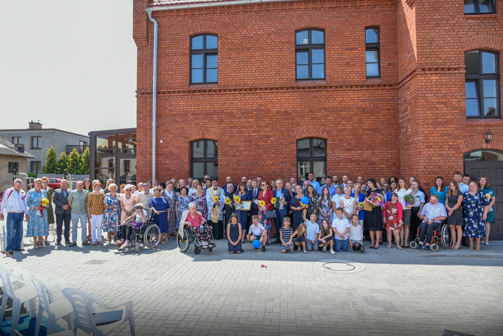 Wstęgę otwarcia przecięli: Burmistrz Witold Ossowski, Sekretarz Biura Posła Aleksandra Mrówczyńskiego Barbara Urbańska, Dyrektor Wydziału Polityki Społecznej Urzędu Wojewódzkiego Ewa Myć – Szopińska, Ksiądz Prałat Zdzisław Wirwicki, Dyrektor Miejsko-Gminnego Ośrodka Pomocy Społecznej Krystyna Cysewska, Kierownik Środowiskowego Domu Samopomocy Kamila Warda, Kierownik Placówki Wsparcia Dziennego Daria Tysarczyk oraz uczestnicy zajęć nowych placówek Roksana Szuca, Seweryn Radtke, Anna Derda i Andrzej Łangowski. Budynek i prowadzoną tam działalność pobłogosławił ks. Rafał Grot.