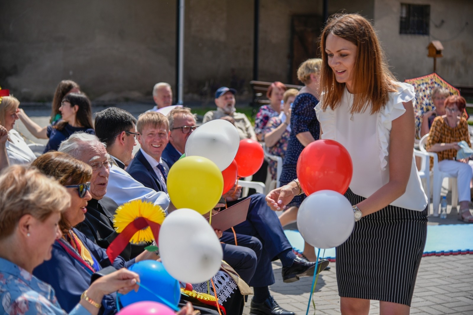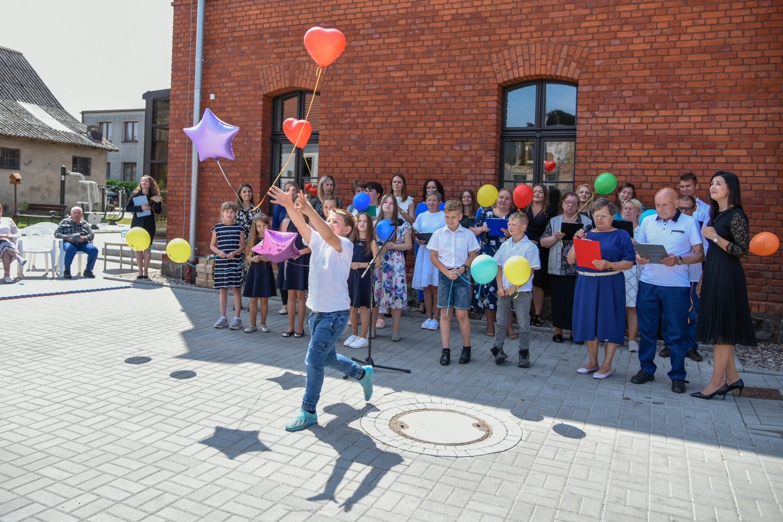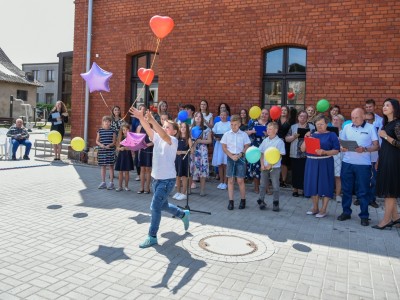 Uroczystość uświetnił występ uczestników zajęć wszystkich placówek. Nie zabrakło również wyjątkowych upominków dla osób zaangażowanych w zrealizowaną inwestycję i codzienną działalność uczestników zajęć w „starej szkole”.