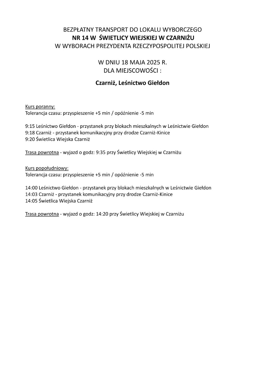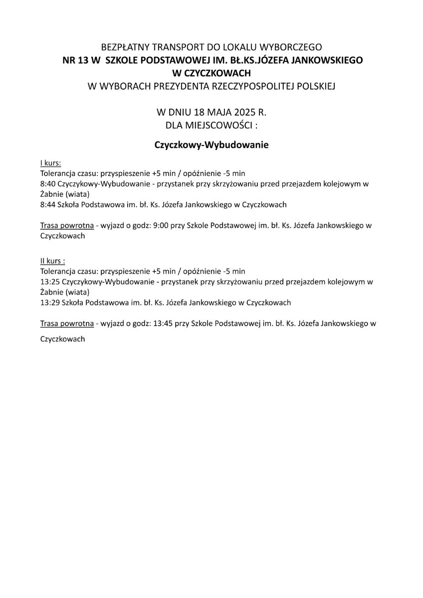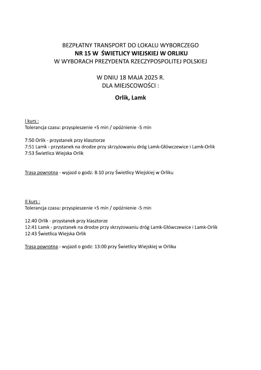 WYBORY PREZYDENCKIE 2025 - podstawowe informacje, bezpłatny transport