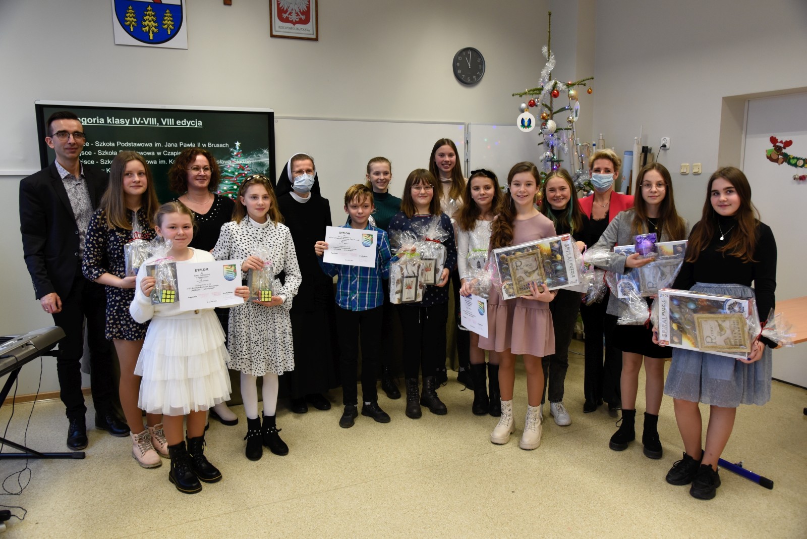 W środę, 5 stycznia br., w Szkole Podstawowej nr 1 im. Jana Pawła II w Brusach odbył się XI Gminny Konkurs Muzyczny „Hej kolęda... – jak to leciało?”, kierowany do uczniów szkół podstawowych naszej gminy. Rywalizacja odbywała się w dwóch kategoriach: uczniowie klas I-III oraz IV-VI. Uczestnicy musieli wykazać się znajomością polskich kolęd, a każda kolejna runda polegała na odśpiewaniu następnych zwrotek. Nie obyło się bez emocjonujących dogrywek, w których uczniowie rozpoznawali kolędy po „nutkach”. Ostatecznie zwycięzcami w kategoriach klas I-III i IV-VIII zostały reprezentacje Szkoły Podstawowej nr 1 im. Jana Pawła II w Brusach.
