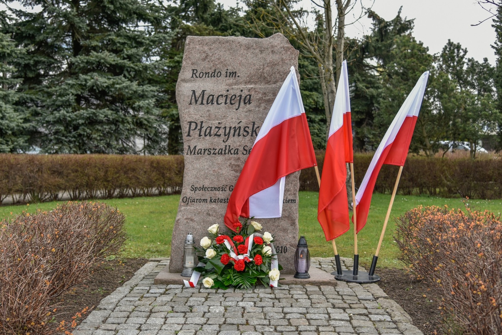 Jak co roku delegacje: samorządu, sołectw, szkół, duchowieństwa oraz różnych instytucji i organizacji, zgromadziły się przy pomniku Ronda im. Marszałka Macieja Płażyńskiego w Brusach, by upamiętnić ofiary katastrofy smoleńskiej. Pomnik wzniesiono w 2010 roku na cześć Ofiar Katastrofy, wśród których był bliski Gminie Brusy Marszałek Płażyński. W imieniu całej społeczności i samorządu Gminy Brusy, symboliczną wiązankę kwiatów i znicz złożyli dziś pod pomnikiem Witold Ossowski, burmistrz Brus i Zbigniew Łącki, przewodniczący Rady Miejskiej w Brusach.