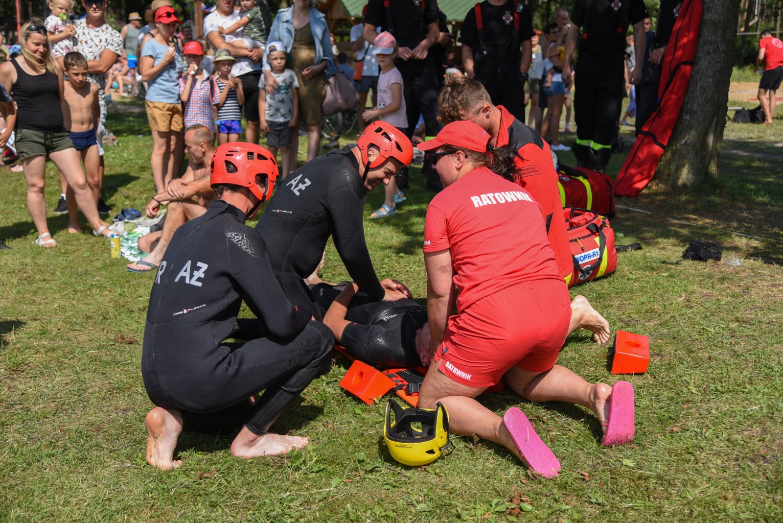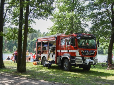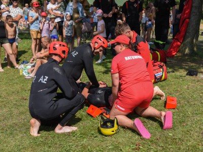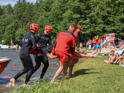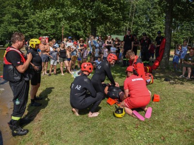 Dodatkową atrakcją był przeprowadzony przez strażaków z OSP Leśno oraz ratowników WOPR pokaz ratownictwa wodnego, w trakcie którego zaprezentowano różne techniki pomocy oraz przybliżono zasady udzielania pierwszej pomocy przedmedycznej.