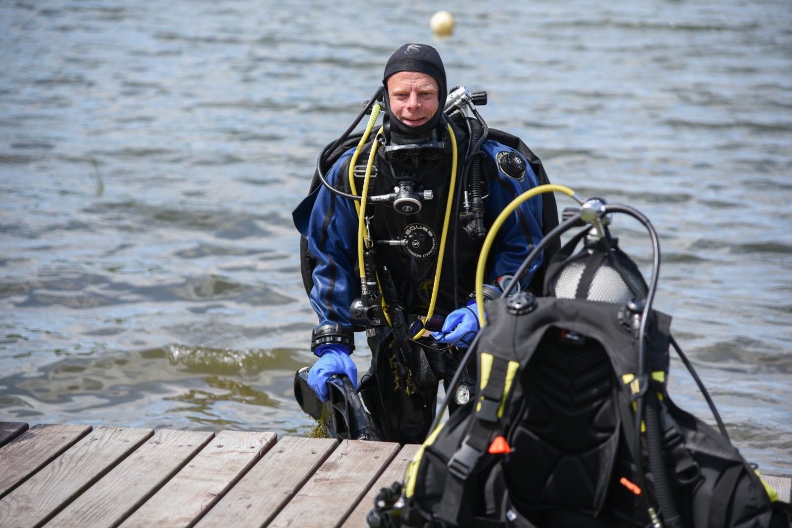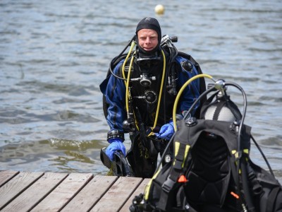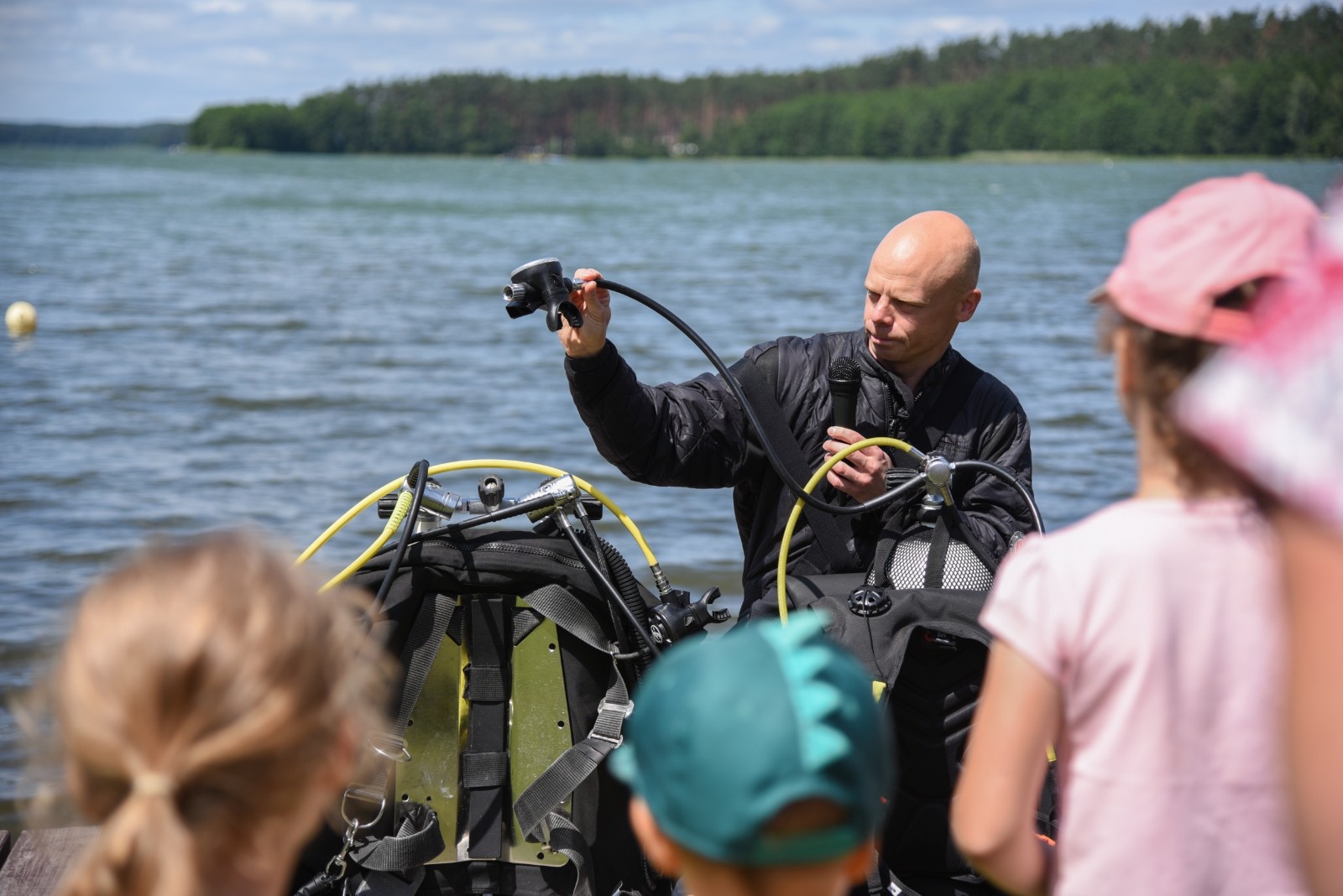 Ciekawostką niedzielnych igrzysk był pokaz sprzętu nurkowego przeprowadzony przez p. Piotra Literskiego z Centrum Nurkowego DEEP z Lubni.