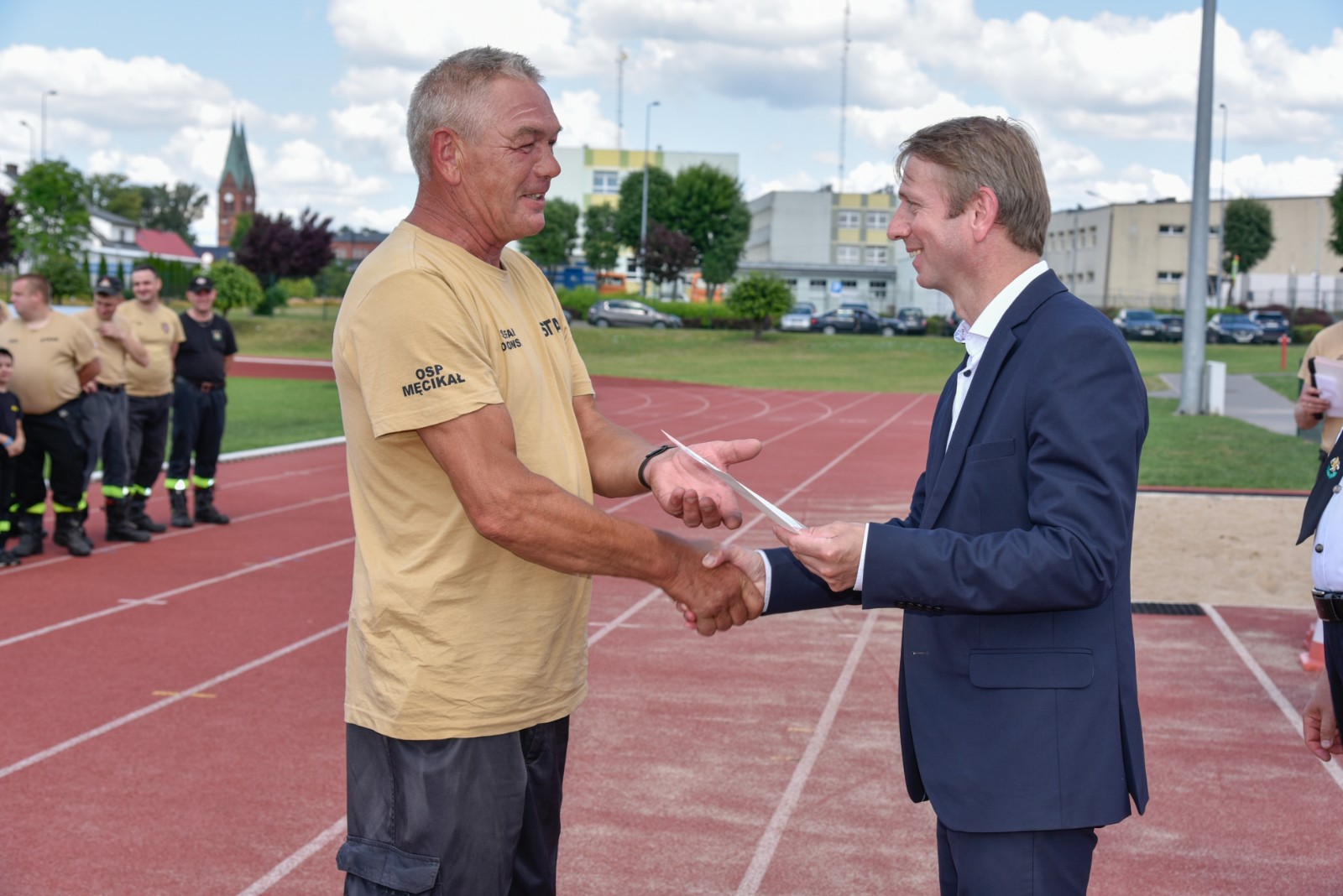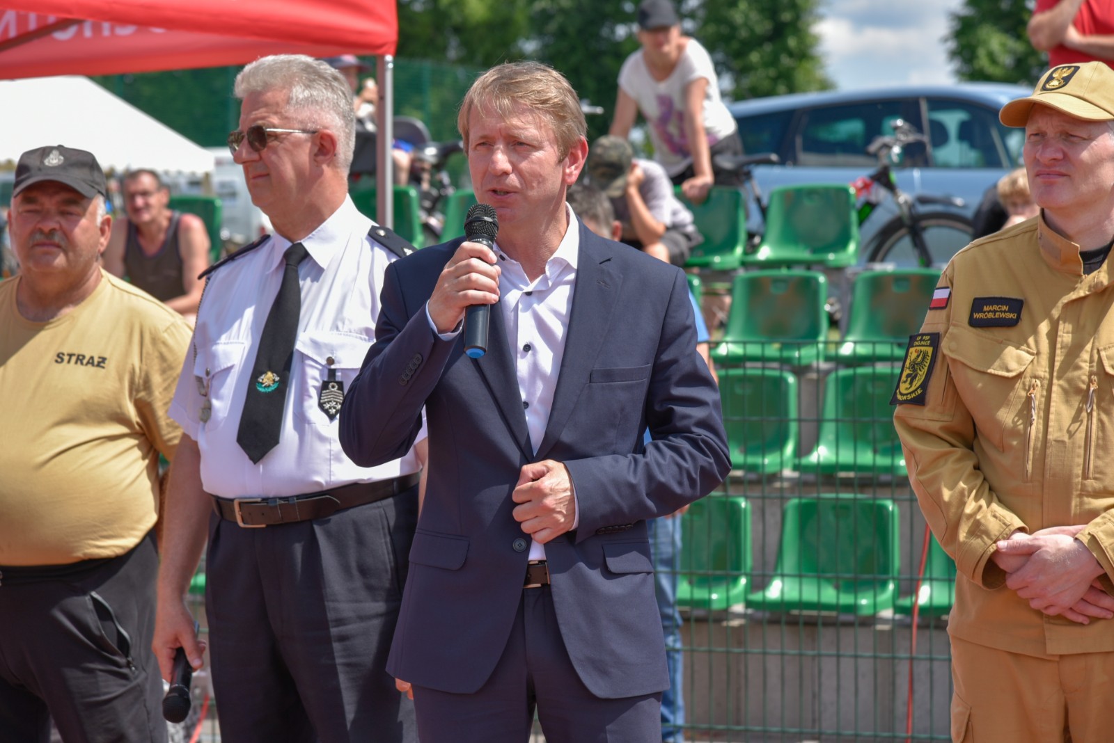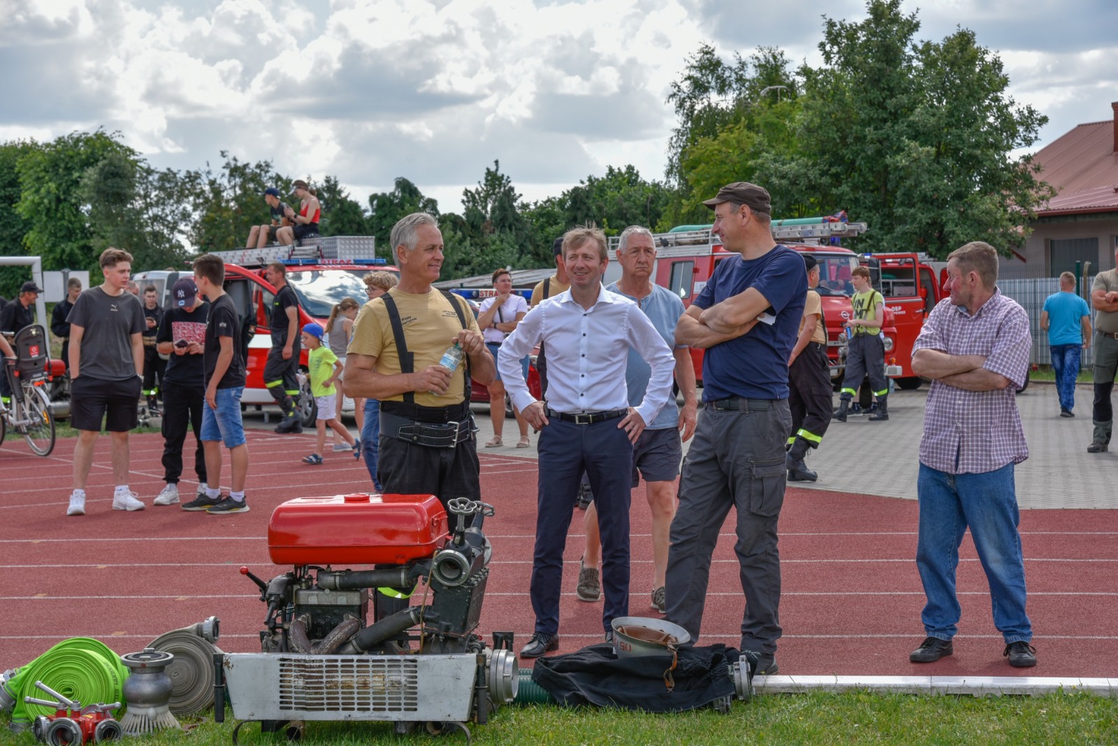 Sędzią głównym zawodów był mł. bryg. Marcin Wróblewski z Komendy Powiatowej Państwowej Straży Pożarnej w Chojnicach. Druhnom i druhom szczególne gratulacje za zaangażowanie, udział i sportową rywalizację złożyli Witold Ossowski, burmistrz Brus, Marek Buza, prezes Zarządu Wojewódzkiego Związku Ochotniczych Straży Pożarnych RP oraz przedstawiciele Komendy Powiatowej PSP w Chojnicach oraz komendant gminny ochrony przeciwpożarowej Janusz Szmaglik. Zawodnikom podczas zawodów kibicowały ich rodziny, szczególnie dzieci.