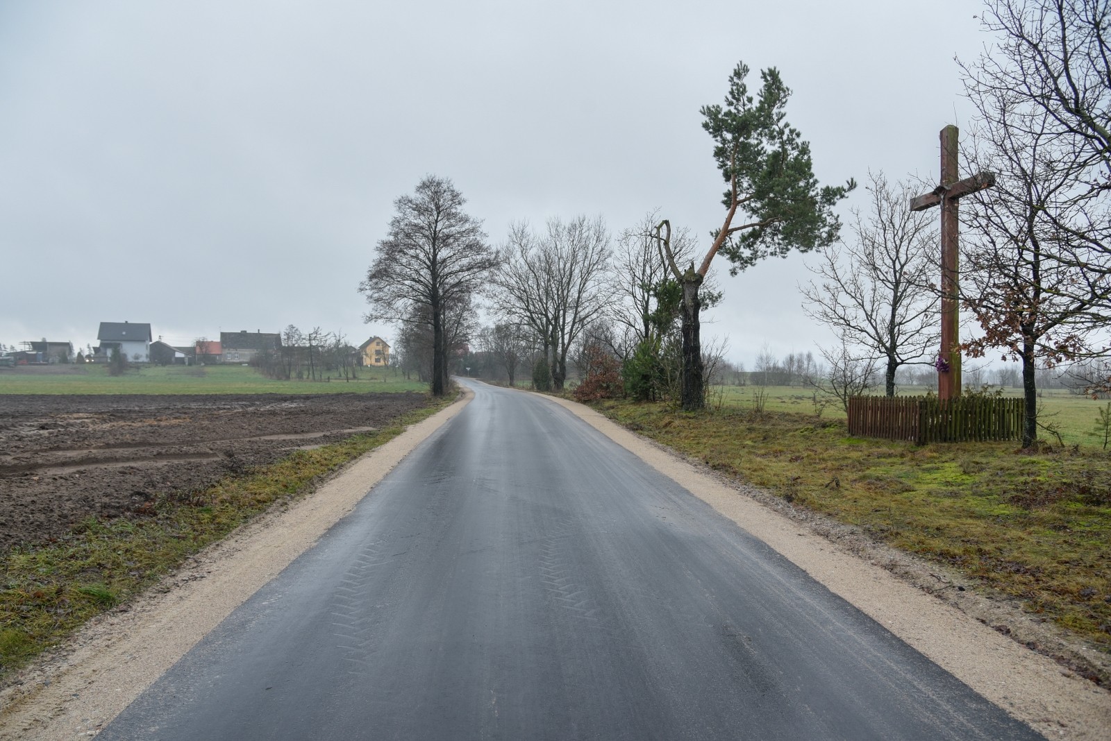 ZAKRES ZADANIA: Budowa drogi o nawierzchni asfaltowej na odcinku 470 mb o szerokości 4,0 m wraz z obustronnym poboczem o szerokości 0,5 m z kruszywa łamanego.